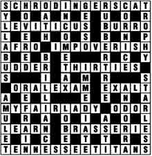 ACROSS 1 S(CHROD)INGER + SCAT (chord anag.) 9 LEVI(TICU)S (I cut anag.) 10 [y]BUR + RO (rev.) 11 anag. 12 IMP(OVER)ISH 14 hidden 15 THIR[s]T I.E.-S 18 O + R(ALEX)AM 20 rev. hidden 23 M[err]Y + FAIR(LAD)Y 25 anag. 27 L + EARN 28 BRASS[i]ER-I-E 29 letter bank