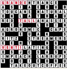 DOWN 1 hidden 2 A’S + UNDER 3 DI(ALTO)NE 4 NASA + L 5 RE(N + TALC)AR 6 NO(TBA)D 7 hidden 8 phonetic hidden 13 A(U + REVO)IR (over rev.) 14 [pi/MU]-STACHIO 16 KA(NGARO)O (groan anag., oak rev.) 18 TENS (anag.) + POT 20 anag. 21 HIJ(AC)K 23 anag. 25 init. letters