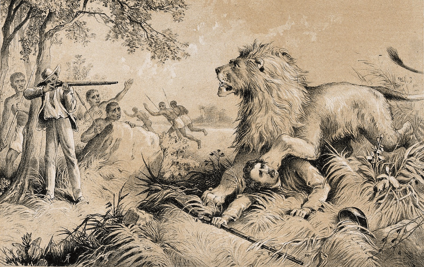 Confirmation bias—the tendency to process new information as evidence of one’s beliefs—is a phenomenon usually relegated to participants in psychological studies but better represented among those who catalog social movements. A white anthropologist in Africa will bend reality to his preconceived notions and call the resulting deception “scholarship,” just as a white feminist will find examples of “female empowerment” wherever a wife has killed her husband. Often, she will be right. In the case of Binstead’s Safari, however, the murder approximates metaphor. The logistics of Millie’s liberation present themselves as phantasmagoria: Henry, who is killed in town by poachers, finds new life as the lion that—spoiler—kills Millie and Stan in sequence. For Millie, death begets an extramarital union; she greets it with literal open arms. For Stan, death becomes the mechanism by which his suspicions—of infidelity, on the one hand, and tribal mysticism on the other—are confirmed.