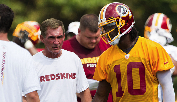 Washington head coach Mike Shanahan and rookie phenom Robert Griffin III. (Flickr/Keith Allison)