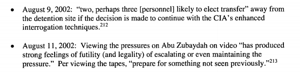 Over the course of twenty days, ending on August 20, 2002, the enhanced interrogation began. What is described in the report is otherwise known as torture. Zubaydah was waterboarded two to four times per day, according to the report, “with multiple iterations of the watering cycle during each application.”