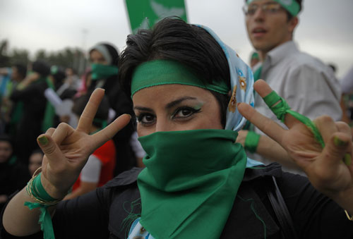 An estimated 85 percent of the Iranian electorate go to the polls June 12, leading some observers to conclude that Ahmadinejad will be defeated. Dreyfuss writes, “Every day Tehran looks greener.” [Reuters Pictures]