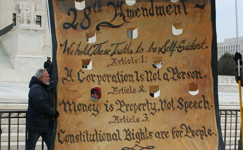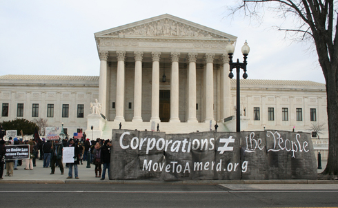 On January 20, the eve of the second anniversary of the Citizens United v. FEC decision, a coalition of activists and advocates gathered outside the US Supreme Court in Washington, DC, to protest the court’s role in opening the gates to the big money that has flooded politics in the past two years.