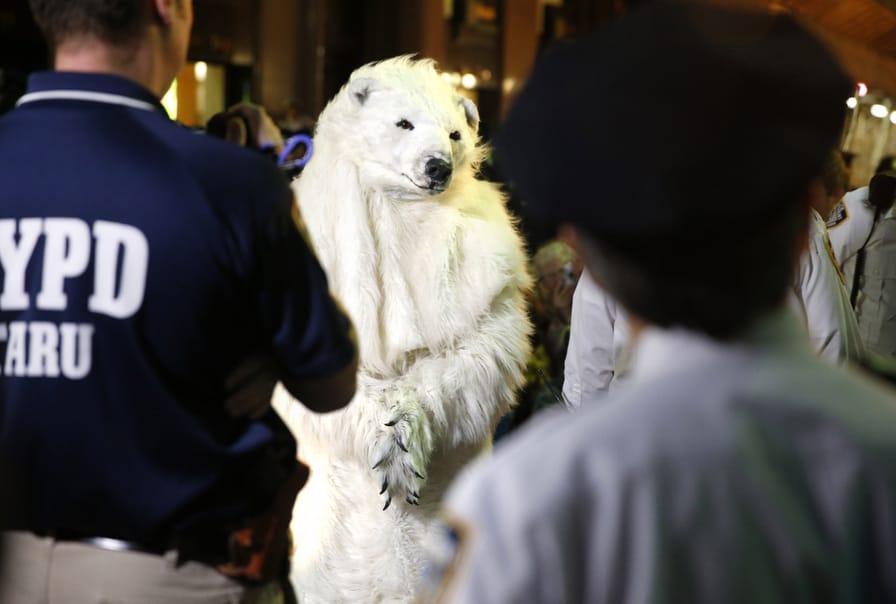 Over 100 people were arrested at “Flood Wall Street,” a protest directed at New York City’s financial district that highlighted unfettered capitalism’s role in the climate crisis. Among those arrested was Frostpaw, the mascot for the Center for Biological Diversity, and underneath his fur, the center’s co-founder, Peter Galvin.
