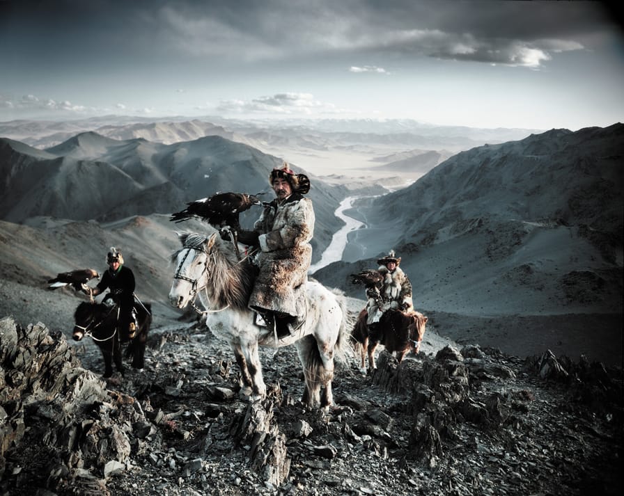 This photo of the Kazakhs of Mongolia, who train golden eagles to hunt, is from the book Before They Pass Away (teNeues Publishing), which celebrates “the beauty and uniqueness of shrinking communities.”