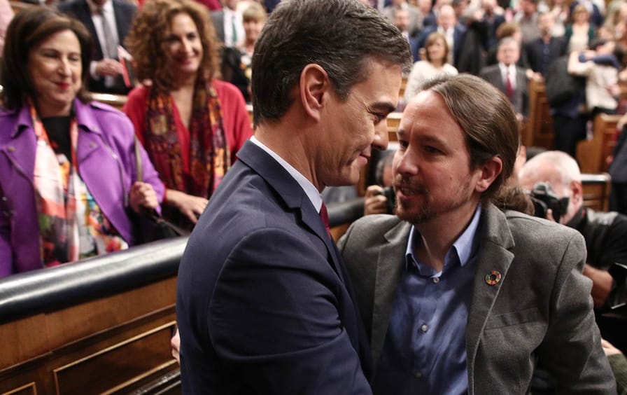Madrid—It felt like déjà vu. On December 30, when most of Spain was in the midst of a two-week holiday break, Socialist interim Prime Minister Pedro Sánchez and Unidas Podemos leader Pablo Iglesias found themselves again together in front of reporters in a room at the Palacio de las Cortes. It was the site where on November 12, two days after the general elections, they’d made the surprise announcement of a joint attempt to form a government. Following six weeks of negotiations, not only between the two parties but also with the Catalan Left Republicans (ERC) and the Basque Nationalist Party (PNV), the Socialists and Podemos presented a 50-page document outlining 11 points of emphasis for how the new “progressive coalition” would govern Spain.