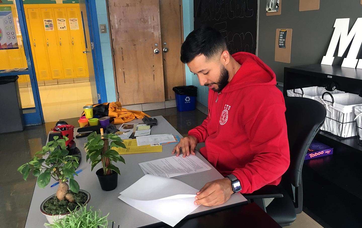 Chicago—When Hilario Dominguez looks around his school, he sees dilapidated bathrooms, students taking recess in the parking lot, and sick kids going through the day without care because there’s a nurse on staff just one day a week. But beyond the school’s walls, Dominguez, a case manager and special education teacher at Peter Cooper Elementary Dual Language Academy, sees money flowing.