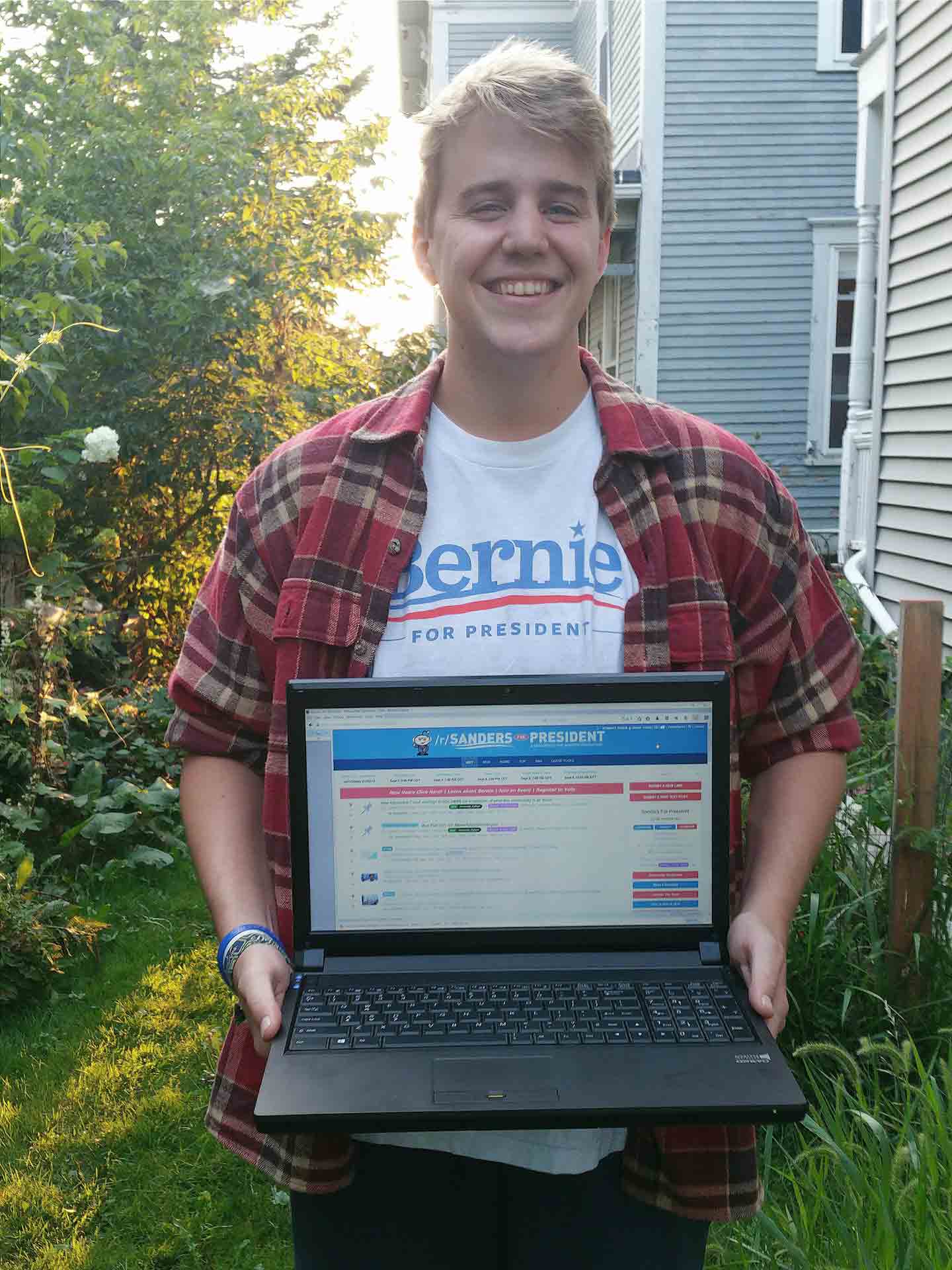 Aidan King graduated from the University of New Hampshire in 2014. But I met him back home in Montpelier, Vermont, a two-hour drive up I-89. Well over six feet tall, with a boyish face framed by blond fuzz, King is the digital-marketing coordinator for a local winemaker—which, as it’s harvest season, also means he picks his share of grapes. Since December 2013, when he founded Grassroots for Sanders with David Frederick (“a stranger I met on the Internet who lives in San Jose”), King has spent most of his nights “glued to my computer…. Sometimes my girlfriend says, ‘Dude, you’re on the computer too much!’, and I take a break.”