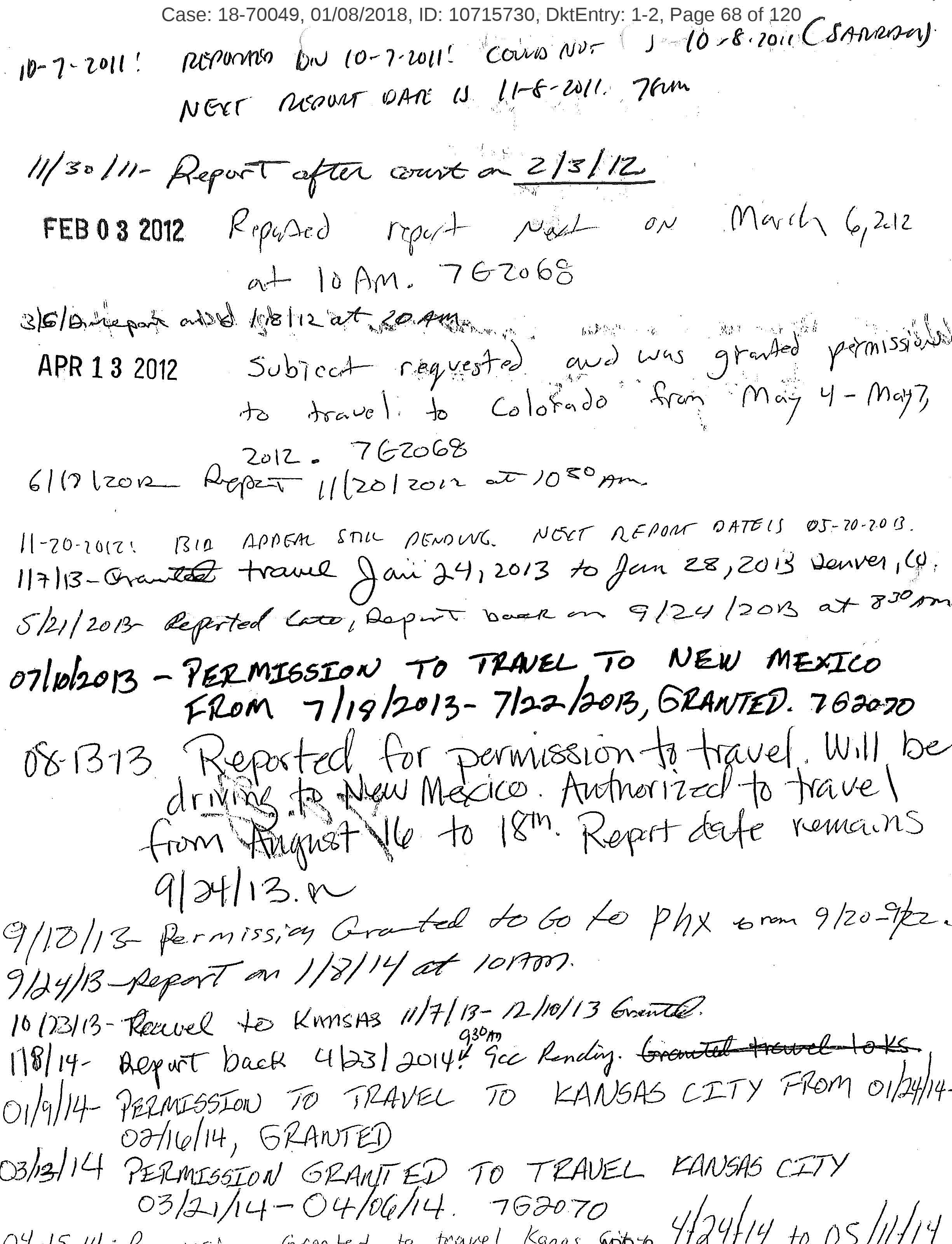 These DHS check-ins were logged in slapdash, hand-recorded notes by officers on what looks like a piece of scrap paper—not the show of any form of organizational competence likely to keep a handle on a multistate, multi-jurisdictional, seven-year asylum case. Some time in the summer of 2017, the San Diego Immigration Court claims to have sent Bringas a notice for his court date for the final ruling in his asylum case, which was set for August 22. But Bringas never received the notice. Soni and other members of Bringas’s legal team tried to find any evidence that the court properly informed him of his court date, but found none. Not even his deportation officer in Kansas City could find such notice. I sent records requests for the same information, and have yet to receive a response. Bringas had been receiving mail from the government at his same address for four years, and had never missed a prior check-in. When he met with his deportation officer, on June 21—just two months before his court date—neither he, nor, seemingly, his deportation officer knew he had an impending hearing over 1,500 miles from his home.