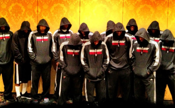 The most notable and widely publicized example of athletic solidarity was seen on the NBA’s marquee team, the Miami Heat. The entire Heat squad posed for a photo, all wearing the now iconic hooded sweatshirts. Trayvon was wearing a “hoodie” when he was killed, and this fact has, maddeningly, been a central rationale given by his killer’s defenders for why he was perceived as a threat.