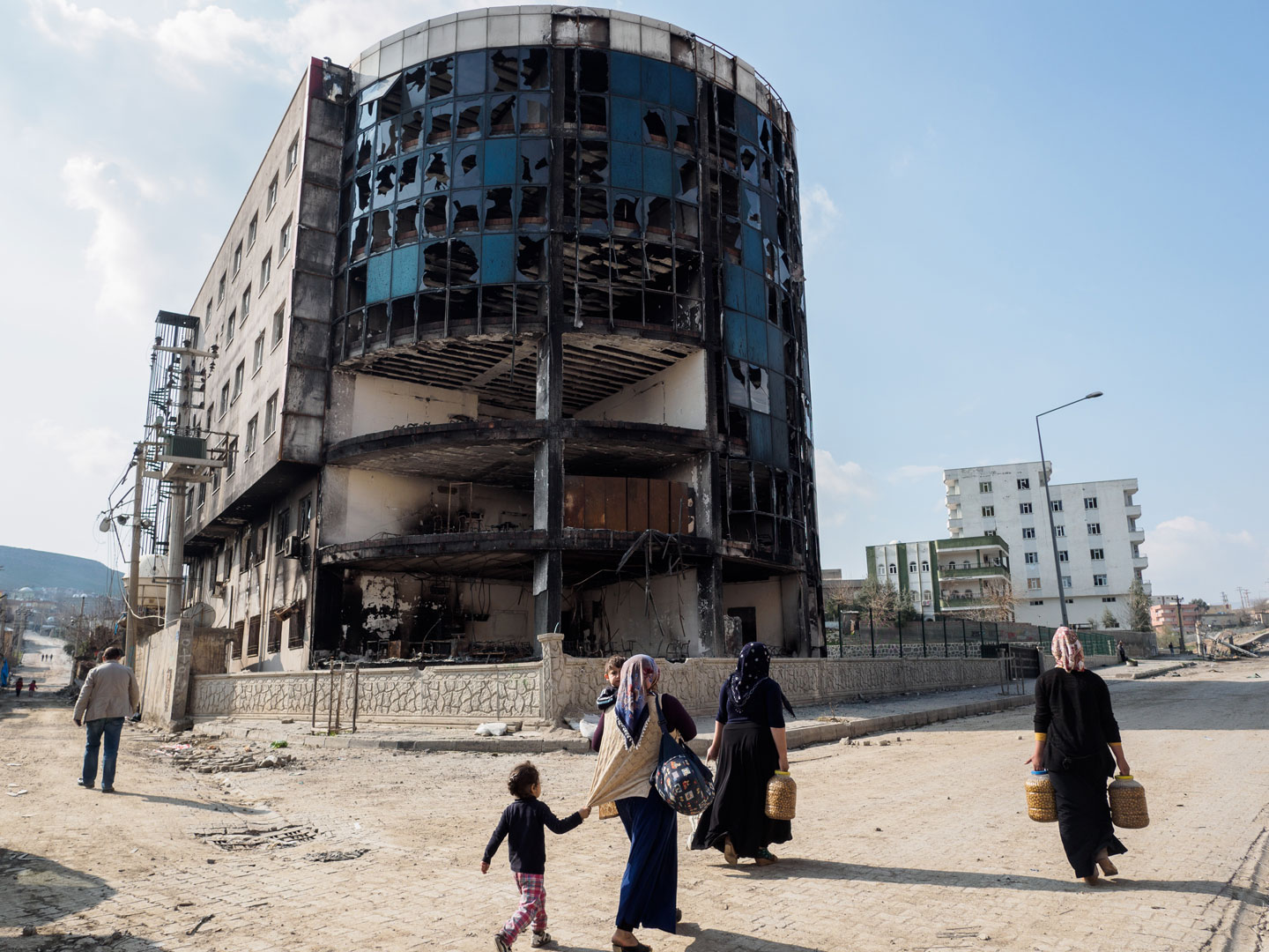 Cizre, Turkey – The streets here are almost desolate, except for the armored personnel carriers that patrol this war-wrecked Kurdish city. The few children who have recently returned or withstood two and a half months of curfew and intense fighting kick around a ball, while their parents salvage the remnants of their homes, scorched black and blown apart by intense shelling. Pavement ripped up by tank tracks is pocked with craters where Kurdish rebels detonated improvised explosive devices (IEDs) against their enemy. Pain and suffering are etched on the faces of survivors, who now live under the close surveillance of an invading army.