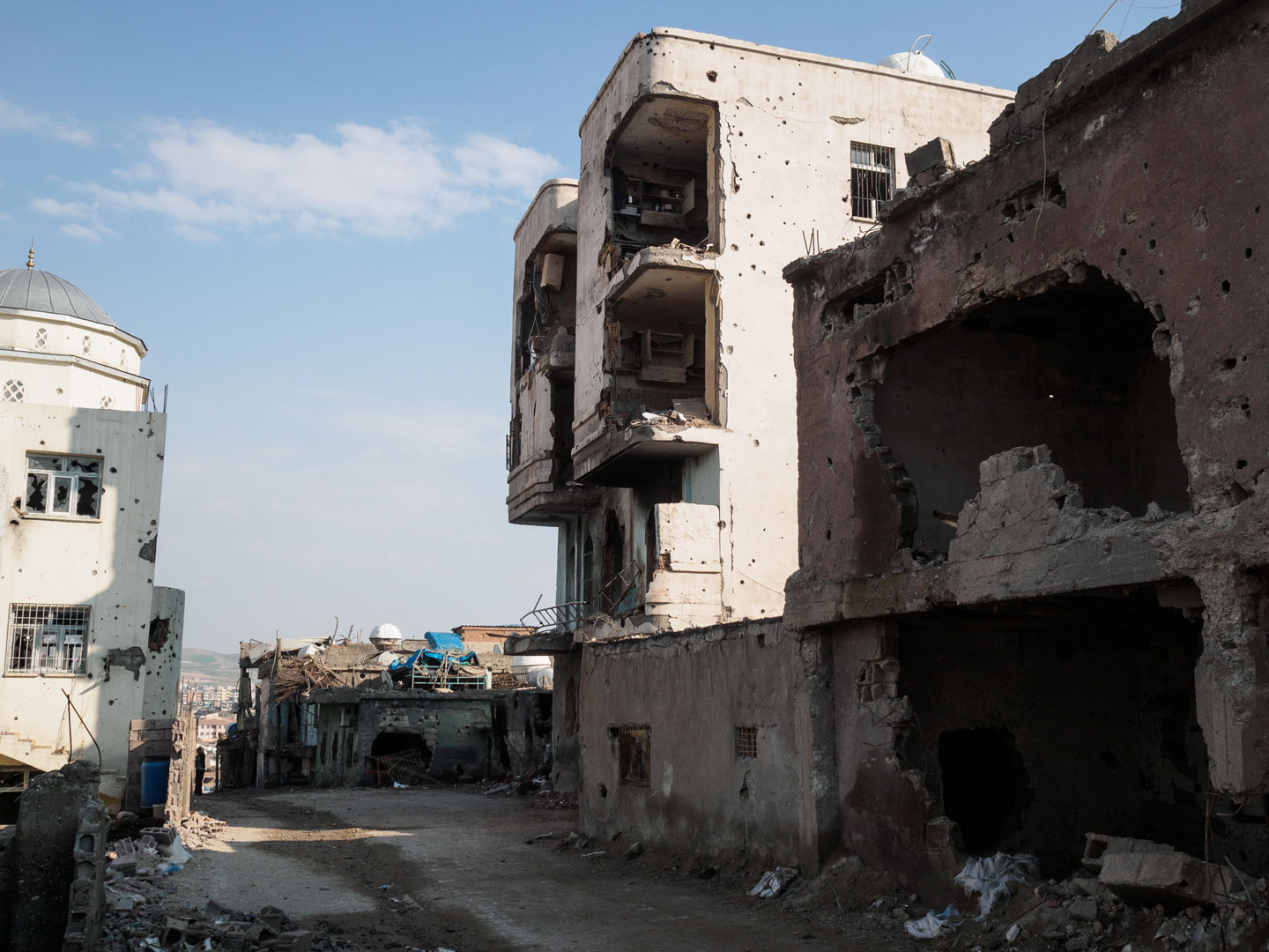 Under fear of reprisal from these occupying forces, the residents, whenever they’re in earshot of Deniz or the police, say only that they are trapped between the PKK and government forces. It’s only after Simeonov and I split up and lose our escorts on the rubble-filled side streets that we start to hear the real stories from survivors of a merciless government onslaught.
