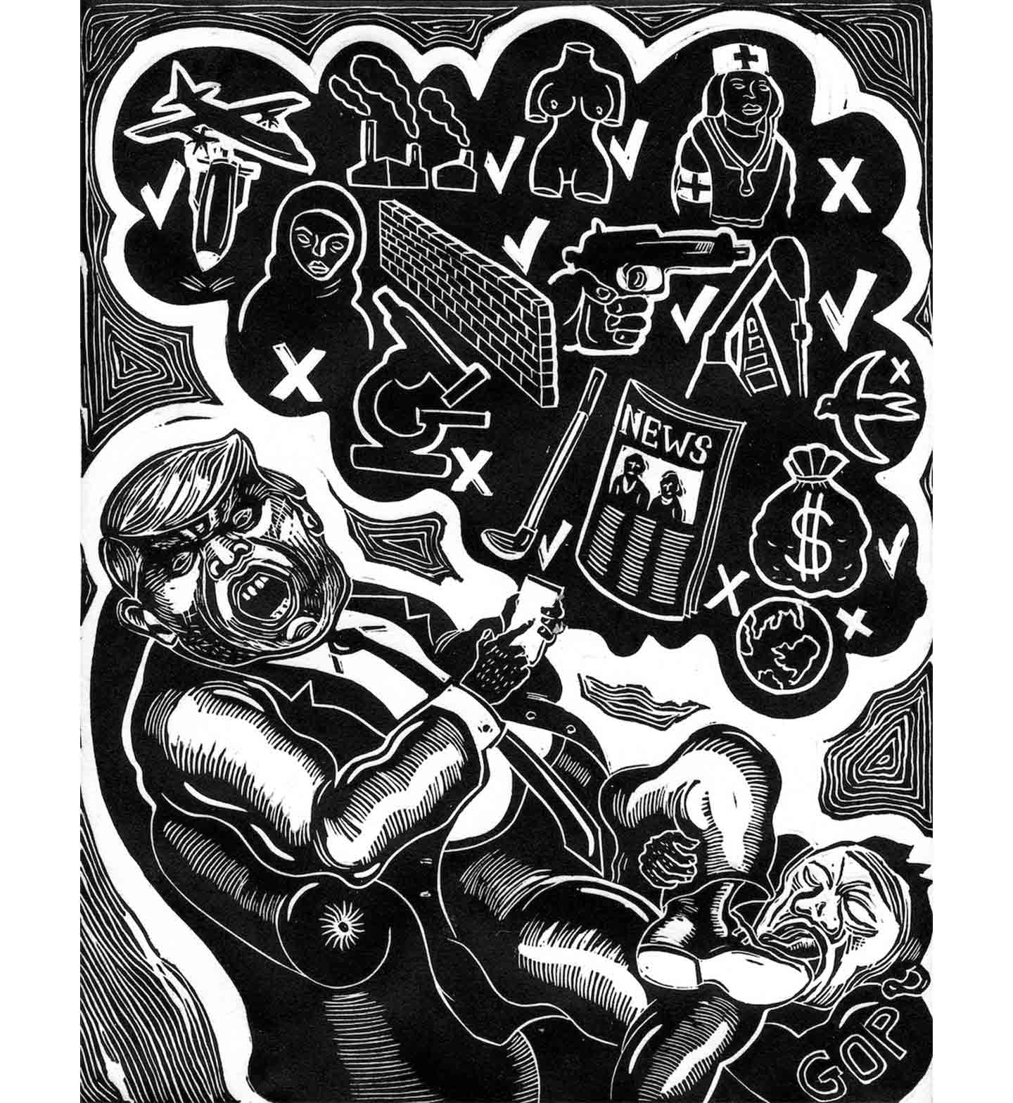 OppArtJanuary 17, 2018Tweeter in ChiefTweeter in ChiefLimited characters, from a characterless creature. Sue Coe Share Copy Link Facebook X (Twitter) Bluesky Pocket Email January 17, 2018 Check out all installments in the OppArt series.