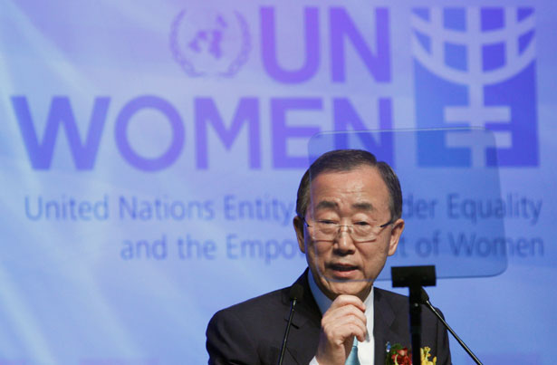 United Nations Secretary-General Ban Ki-moon delivers a speech at an international meeting for women youth leaders in Seoul, August 13, 2012. (Reuters/Kim Hong-Ji)