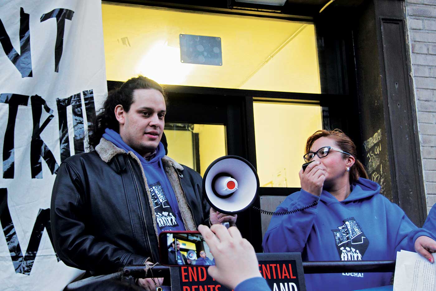On a mild spring evening in March, not far from the screech of the M train, Martina Romero climbed onto the stoop of her six-story tenement, clasped a microphone, and decried the ever-rising rents that threaten to displace her family of five. “I work to support my family, and I need to pay for my four kids, not just for rent,” she said in Spanish, staring out at scores of fellow renters who had turned out for a rally at her building in southern Williamsburg in Brooklyn. “That is why I am fighting, so that I won’t get any more rent increases.”