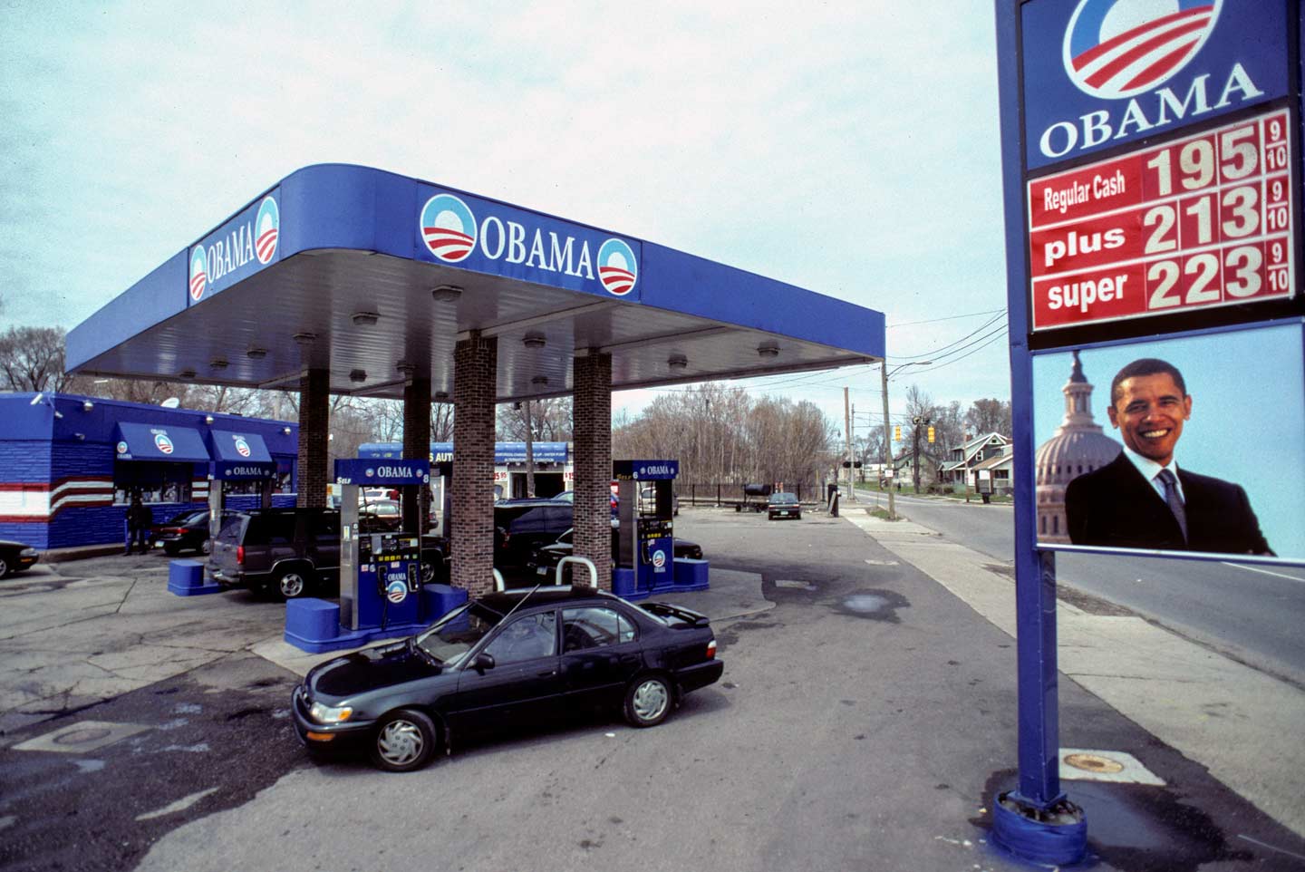 Also in Detroit, an Arab-managed gas station was named for the president in 2008, and for three years featured his smiling portrait next to the dome of the US Congress. It has since been renamed Speedy Gas Station and the portrait has been removed.