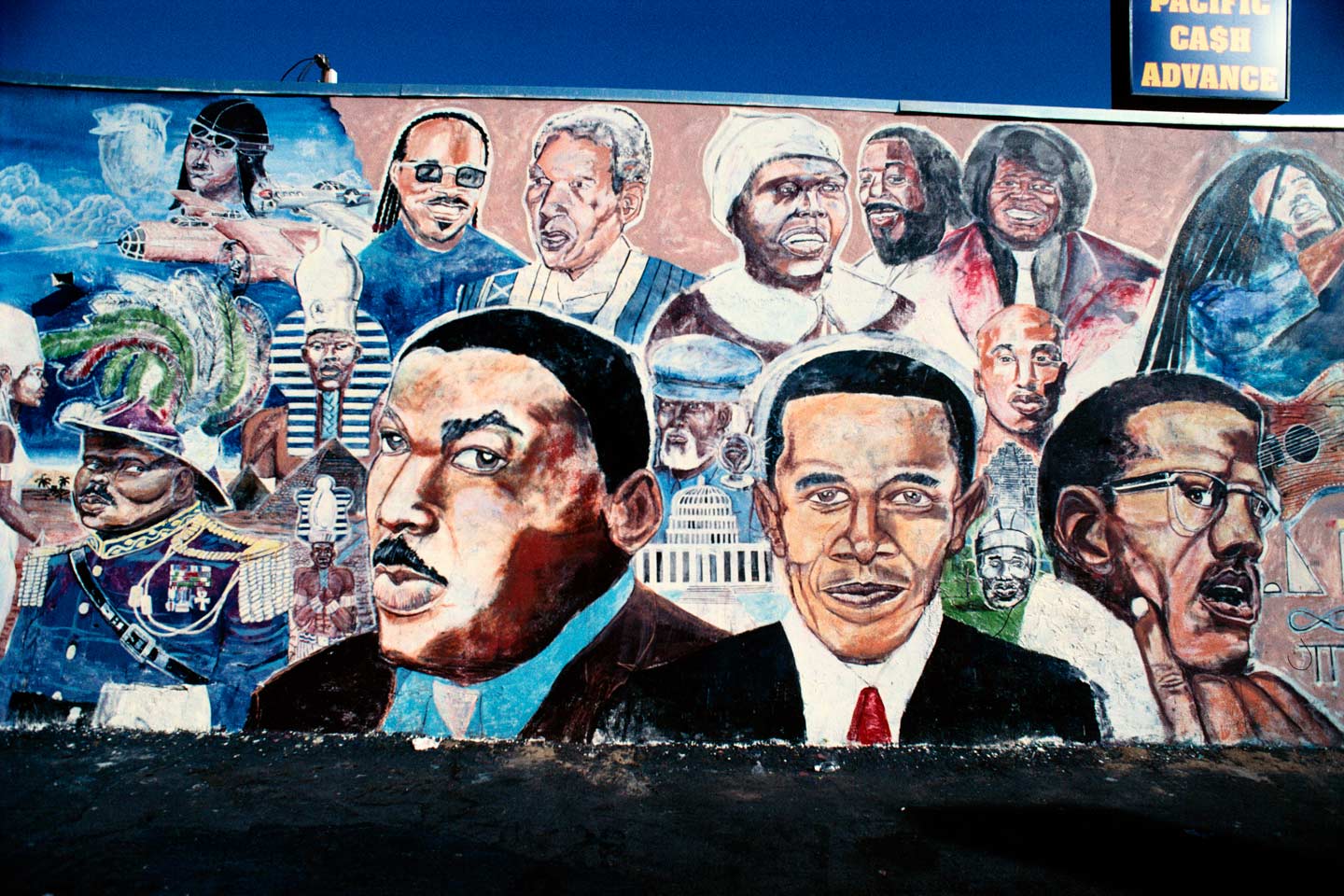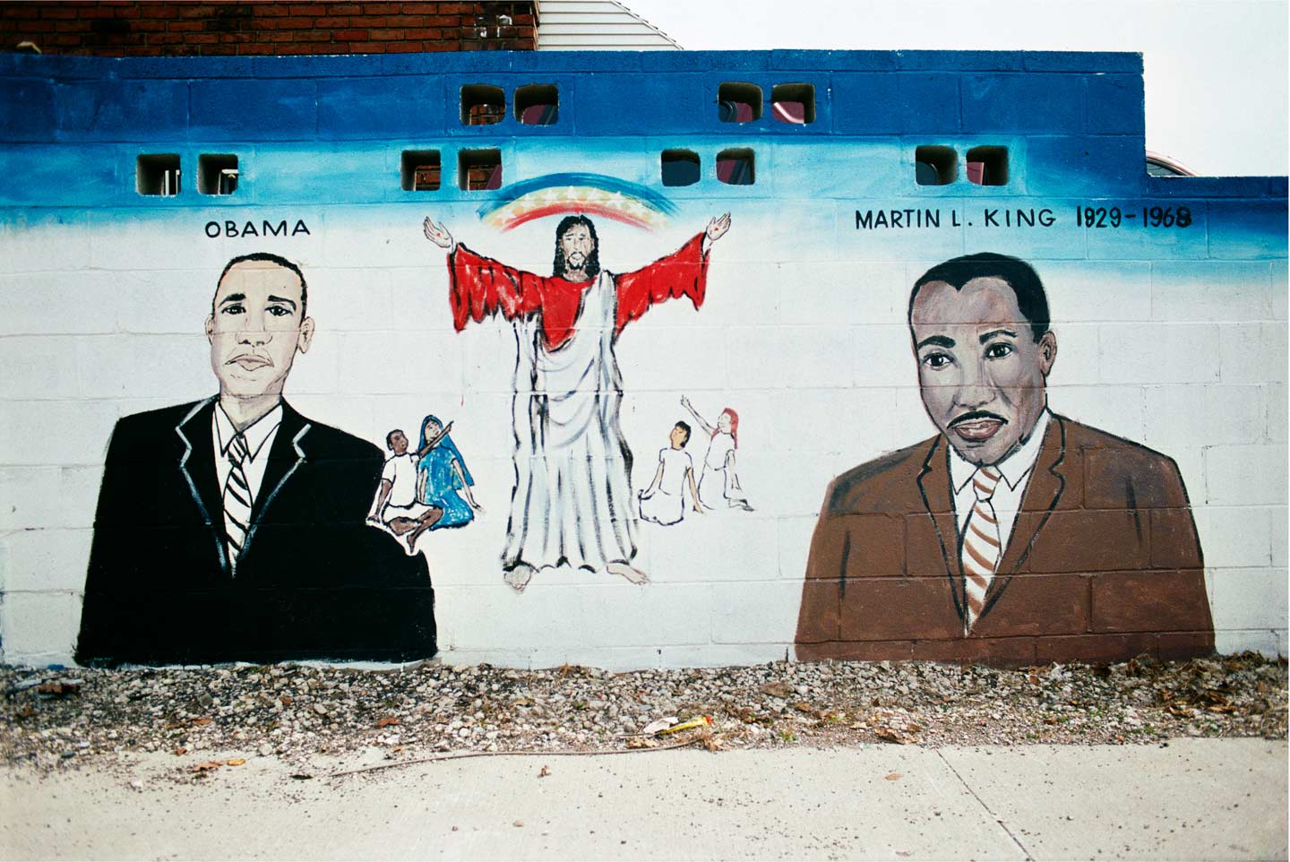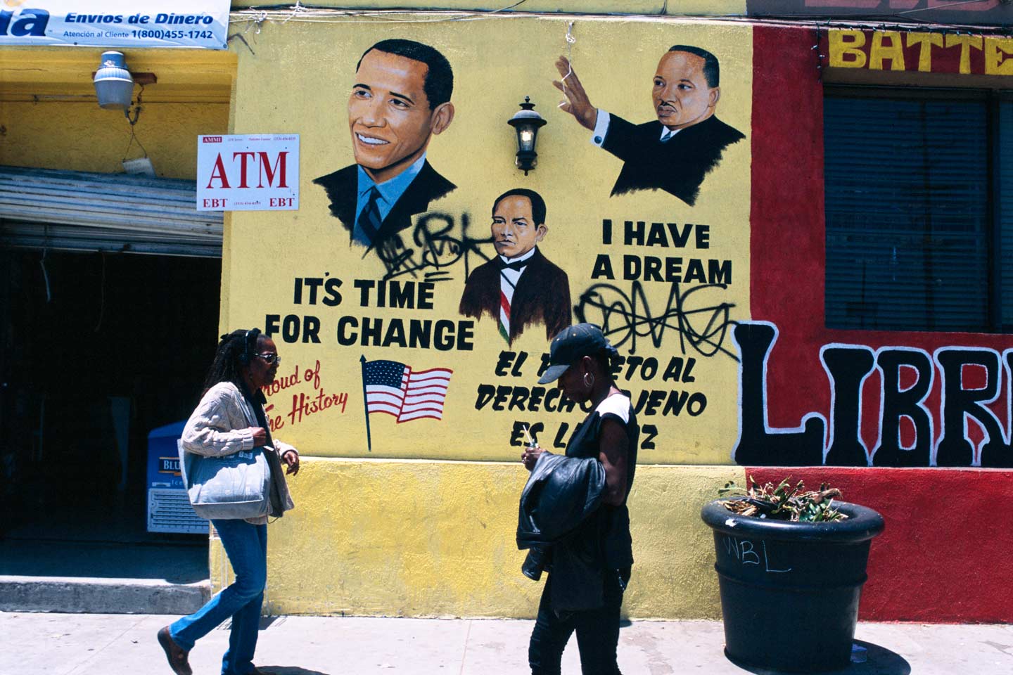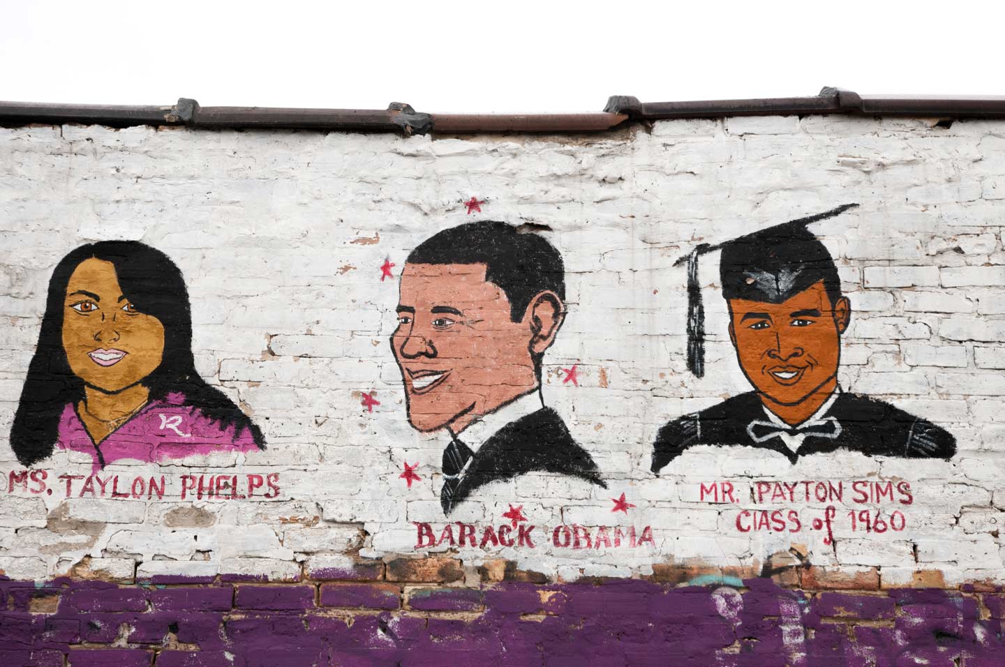 Documenting the murals that decorate the walls of barbershops, restaurants, butcher shops, storefront churches and liquor stores in poor, minority communities has been a decades-long interest of mine. These examples of popular art employ a relatively small range of symbols, motifs, and iconic figures to remind people of their roots and aspirations. When Barack Obama was elected in 2008, I knew that his likeness would soon be featured in ghettos across the nation, and so I searched inner-city neighborhoods for his portraits and interviewed artists and neighborhood residents.