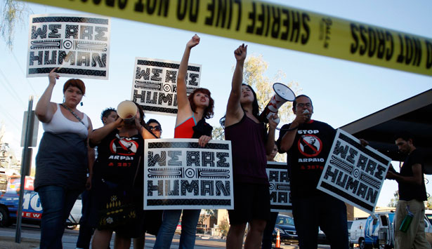 People protest anti-immigrant legislation in Arizona. (REUTERS/Joshua Lott)