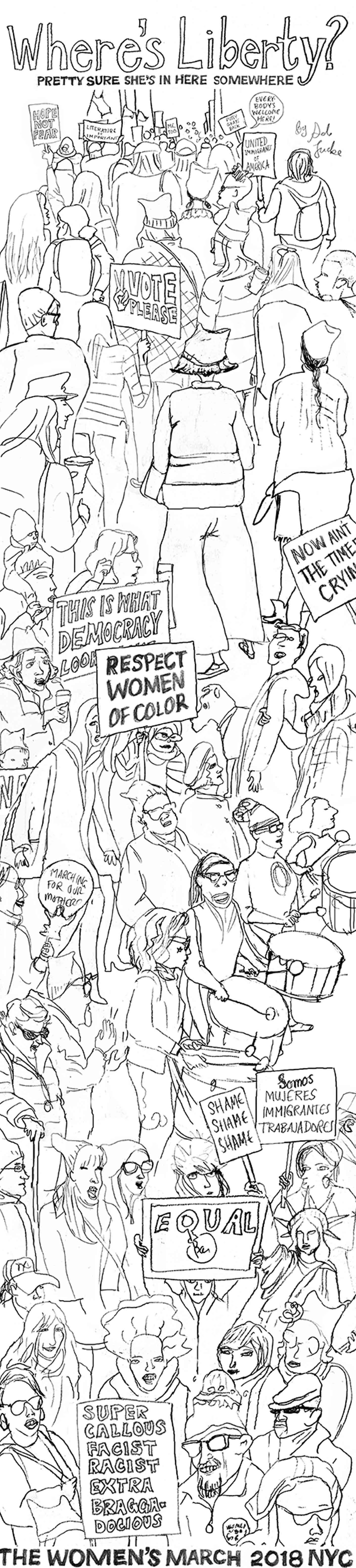 ActivismOppArtAugust 29, 2018Where’s Liberty?Where’s Liberty?Sketching at the NYC Women’s March 2018. Deb Lucke Share Copy Link Facebook X (Twitter) Bluesky Pocket Email August 29, 2018 Check out all installments in the OppArt series.