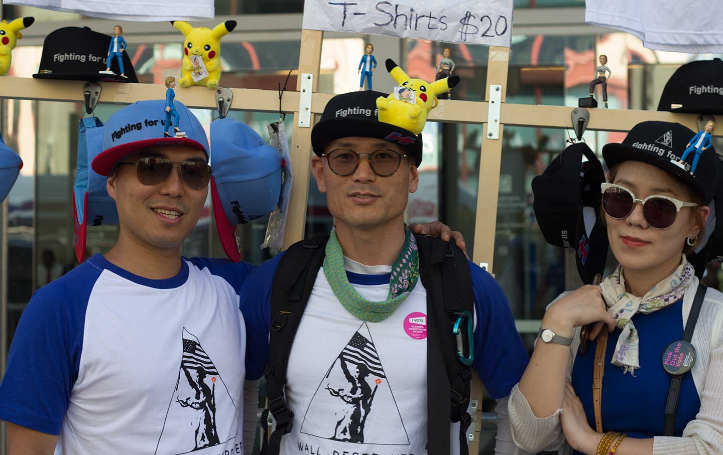 Jin Ho Kim sells baseball caps with magnetized Hillary Clinton action figures perched on their lids. “We think they’re going to take off,” Kim said, motioning to two friends who joined him to take advantage of the marketing opportunity at the Democratic National Convention. Kim, 36, is residing in Korea as he does research on the country’s cuisine. Originally a liberal political-science student who went to Bowdoin College, he felt the same sting as many other Bernie Sanders supporters upon the release of the Democratic National Committee emails earlier this week. “I didn’t think that everyone who really wanted to voice their opinions was able to voice their opinions,” he said.