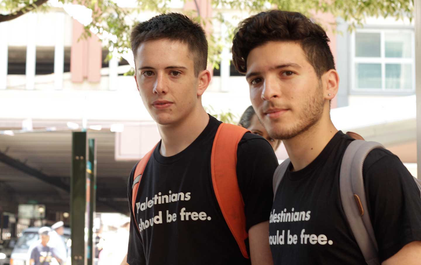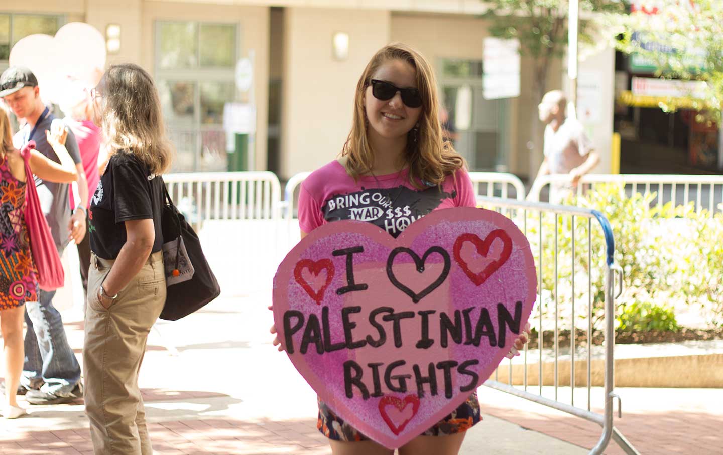 We stumbled upon Noah Mlyn, 20, and Noah Habeeb, 22, on their way to a pro–Palestinian rights protest organized by advocacy group Code Pink. Both Noahs are Jewish activists interning with Jewish Voice for Peace who came to the Democratic National Convention specifically to voice concern for the party’s lack of mention of the Israel-Palestine conflict. They both voiced support for Bernie Sanders, but stressed that voting is not enough to make a difference in this country. “Voting is great, but it’s insufficient in that change doesn’t happen during the electoral extravaganza every four years,” Habeeb said.
