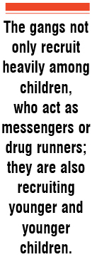 The gangs not only recruit heavily among children, who act as messengers or drug runners because they are better able to evade detection by police; they are also recruiting younger and younger children. According to El Salvador’s National Public Security Council, the typical age at which children enter the gangs has dropped from 14 to 12. The Mara Salvatrucha recruits children as young as 8 or 9.