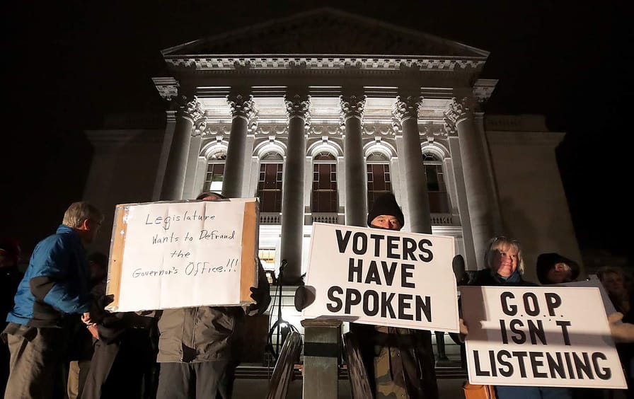 This is a radical assault on democracy: an attempt by the loser of an election to use his last moments in office to undermine the authority of the winner. It is because this sort of behavior is so toxic, and so fundamentally threatening to respect for election results and for the governing decisions that are supposed to extend from them, that thousands of Wisconsinites have been protesting the abuses that Walker and his allies propose to perpetrate.