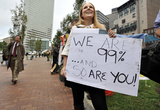 Hmmm. Let’s leave aside for the moment the question of whether caring “most about people” is compatible with silence on state-mandated transvaginal ultrasounds, personhood amendments and so on—let alone forced childbirth. I would think that when one in three women has at least one abortion, and when virtually all women have used birth control, we are talking about issues that affect “most people”—including most men, who benefit greatly from women’s ability to control their fertility. Let’s not look too closely, either, at the assumption that the 99 percent constitutes a coherent category: that a software engineer, a car salesman, a Chinese-food delivery man, a rabbi, a municipal clerk, a fashion photographer and a cleaning lady really have the same interests. The notion of common cause, even among the actual working class, is as much a romantic and aspirational construction, as much a matter of “identity politics,” as the oft-derided ideal of “sisterhood.”