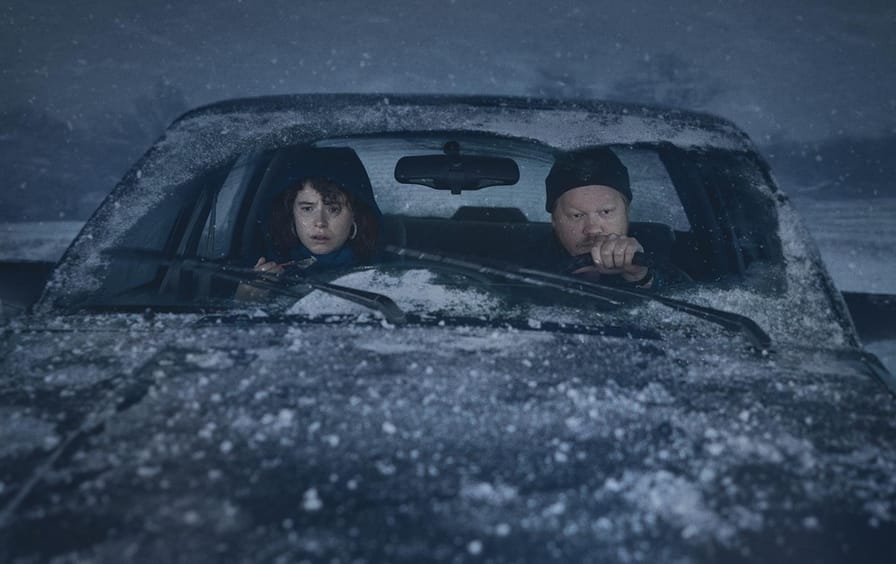 Charlie Kaufman’s I’m Thinking of Ending Things is a claustrophobic film. Adapted from Iain Reid’s horror novel of the same name, much of it takes place in the front seat of a small car in the midst of a cross-country road trip as a horizon of nothing but flat, monochrome frontier rolls by out the windows. The passengers—an unnamed woman and her boyfriend, Jake, with whom she’s considering ending things—seem hemmed in by each other, their conversation dissipating once they approach the boundaries of what they can’t say or know the other can’t stand to hear.