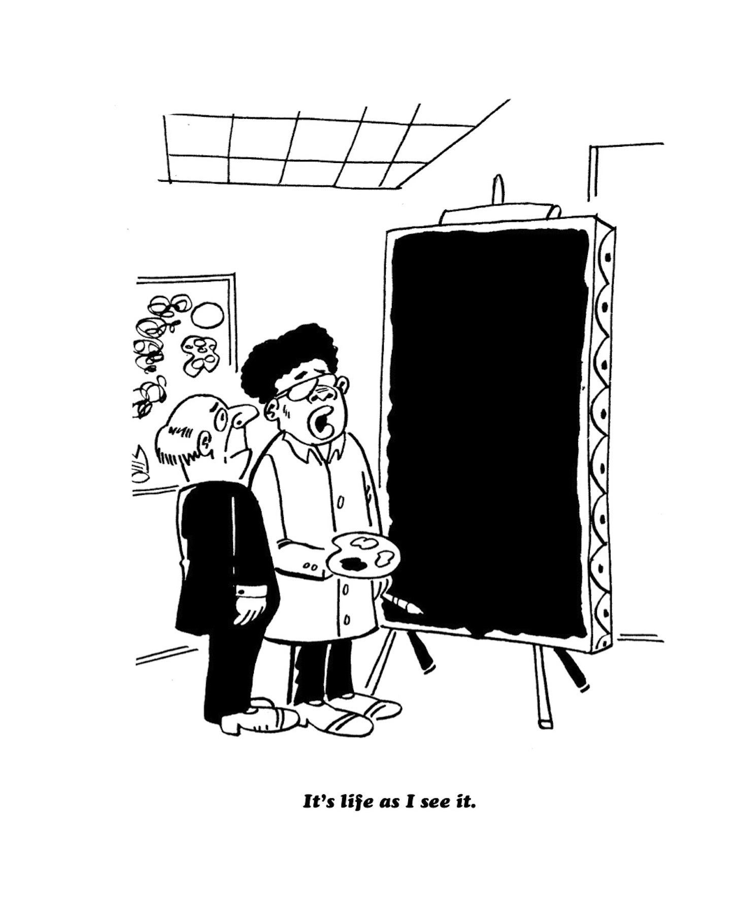 It’s Life as I See It, a recent anthology of work by Chicago-based Black comic artists from 1940 to 1980, takes its name from a cartoon by Charles Johnson, which shows a Black artist standing with an older white man in front of a large canvas. The canvas is painted black and surrounded by a thick white border. In the caption, the artist informs the other man that the painting is life as he sees it.