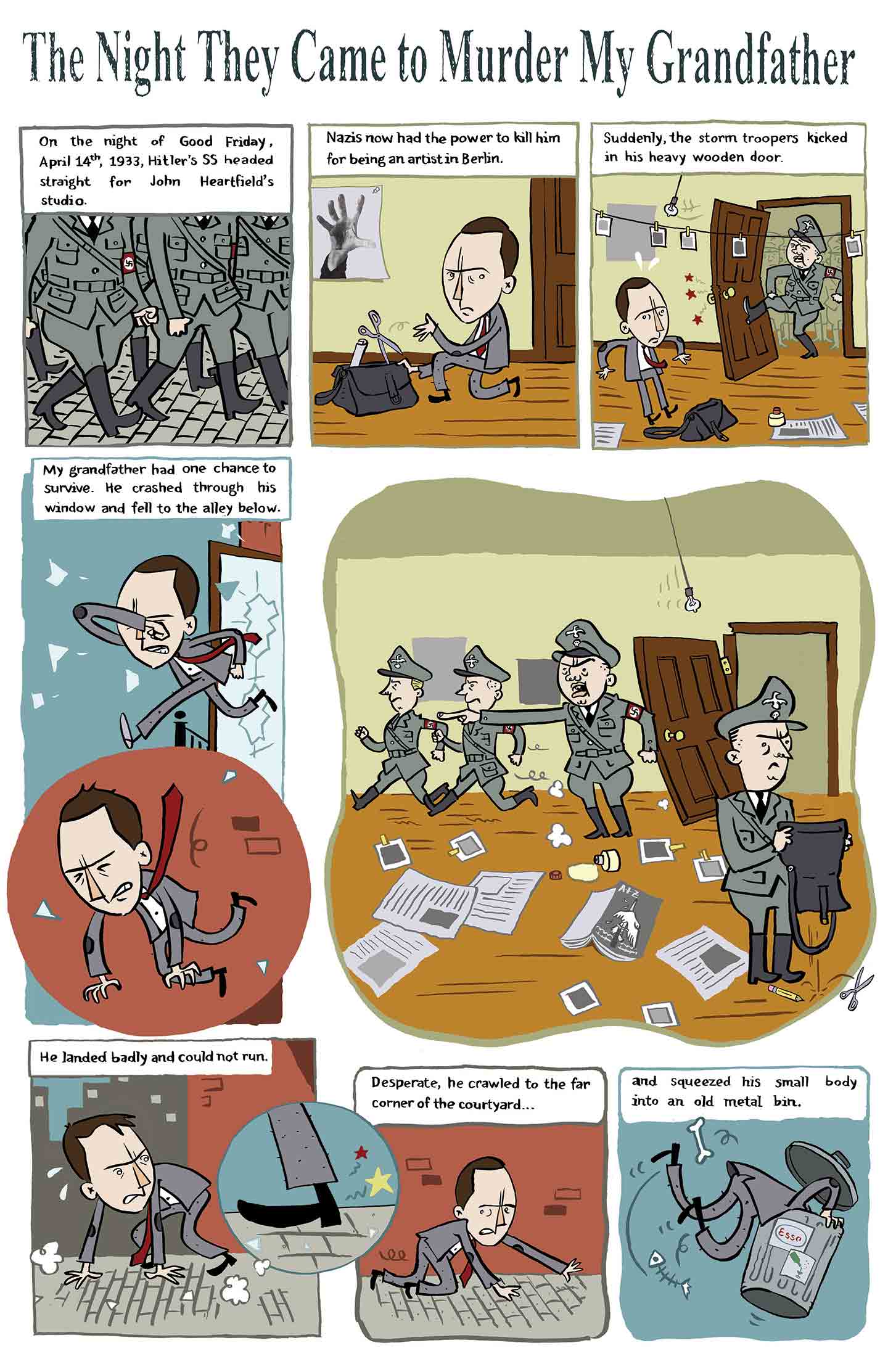 I first met artist Lance Hansen after The Nation published Lance’s graphic biography of George Grosz, who had been Heartfield’s close friend and collaborator. Lance originally asked me to work with him on a comic strip about my grandfather. But I thought Lance’s initial drawings captured my grandfather’s character so well that I suggested we collaborate on a graphic novel telling John Heartfield’s extraordinary life story. Please visit JohnHeartfieldExhibition.com to learn more.