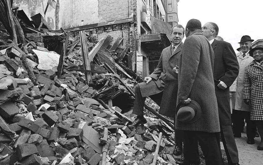 When Romney took over HUD, however, he found himself caught between LBJ’s failed public-private programs and Nixon’s lack of interest in seeing any of them through, let alone improving them. Romney also could not let go of his racist ideas about Black fitness for citizenship and homeownership. He could be calm and levelheaded in his appeals for compassion for the dispossessed, but he could also be alarmist, warning the public that Black radicals might adopt the tactics of the Vietcong if the federal government didn’t take measures to resolve urban tensions.