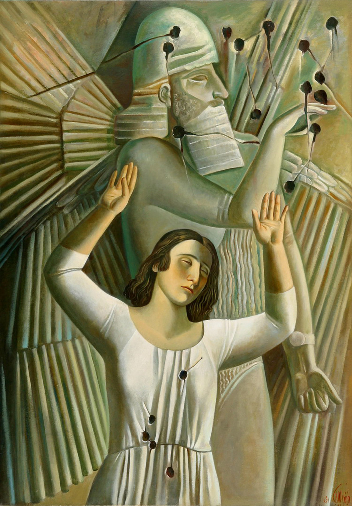 Not all Western artists felt they could discern the realities of war only through a technologically induced haze. The photographer Judith Joy Ross produced fiercely attentive black-and-white portraits of service members and their families at a farewell dinner for departing troops in Allentown, Pennsylvania, in 1990. Other portraits she took at this time are captioned as taken at “gulf war rallies” in Allentown and nearby Easton. It’s not clear to me what kind of rallies these were—in support of the war effort or in protest? Maybe that would have been evident at the time, but I suspect that Ross left the ambiguity deliberately. The portraits’ tight framing and blurred backgrounds present these people in isolation. There’s no sense of them being part of a community either at the rallies or the dinner. Nor, for the most part, does one feel that these individuals are in communication with the person taking their picture. Some of their eyes avoid contact, and when they look straight into the camera, that is, at the photographer, it’s as if their thoughts are reflected back into themselves. They don’t appear to expect a response. Perhaps they are too immersed in the question of their future. In any case, they seem intensely alone, thrown back on themselves, tragically disconnected, even as we have to imagine the crowd nearby. They are trapped, perhaps, in the American ideal of self-reliance. Or maybe it’s simply that the call to war places everyone who hears it, whether they realize it or not and whether they choose obedience or dissent, in a state of acute moral solitude and unknowing.
