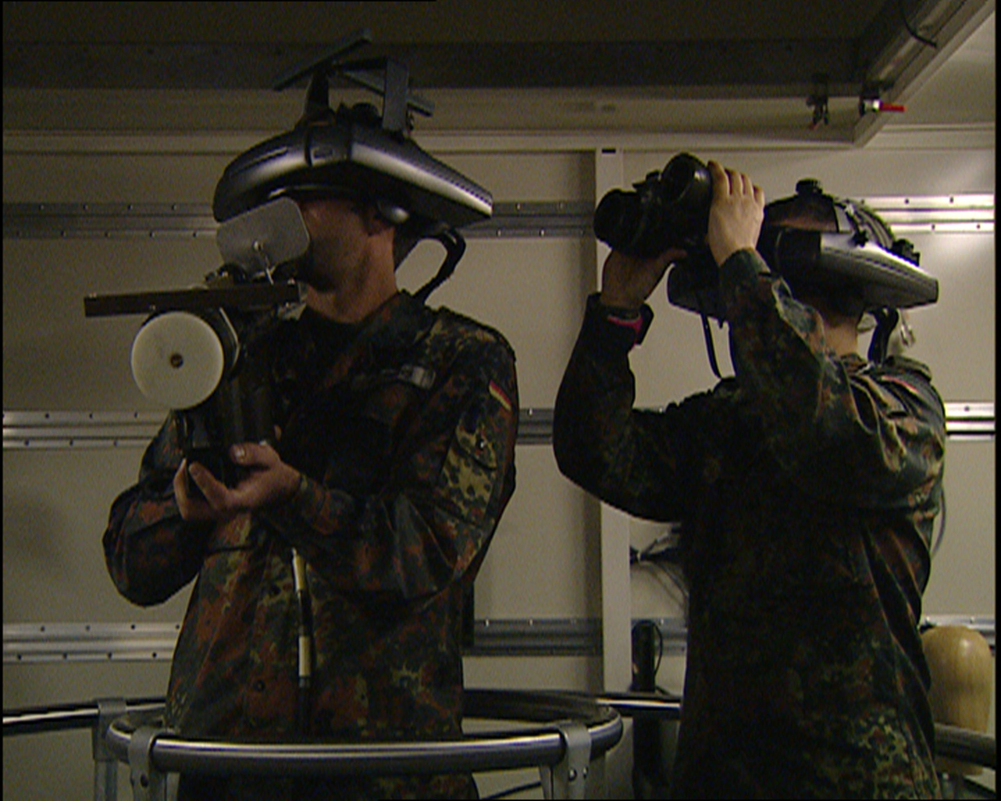 For those of us who, whether with dismay or indifference, could only read about our country’s wars in the newspaper, watch televised reports, or later, access information via the Internet, it was always war at a distance (as a 2003 video here with that title by German artist Harun Farocki would have it). Yet what could be experienced at a distance in 2003 was very different from the experiences available to those on the sidelines of past wars. As Katrib points out in her catalog essay, the 1990s was a time when “many Western artists and thinkers…were focused on analyzing the role of the image within the rise of digital media technology.” Probably she would have been more accurate had she written “mass media technology”—a specific concern with the digital was not yet widespread, if I remember correctly; the dial-up modems, command-line interfaces, and online communities operating as bulletin board systems felt closer, in retrospect, to legacy media than to the hyperconnected digital ecosystem we’re familiar with today—but she is right to recall the prevalent fascination with media imagery at the time. The influence not only of Baudrillard but also of figures such as Paul Virilio and Manuel DeLanda was burgeoning. They were constant references in art discourse.