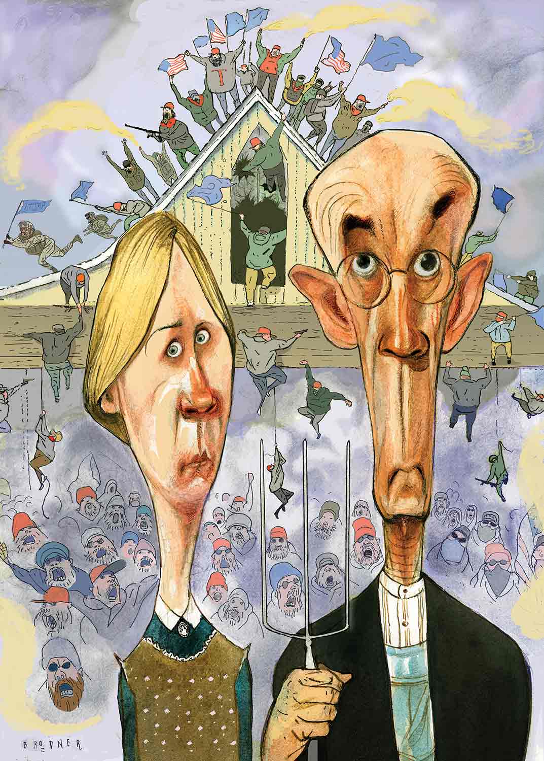 Living & Dying in America: A Daily Chronicle, 2020-2022 is published by Fantagraphics Books. This series continues weekly at theNation.com and daily at stevebrodner.substack.com.