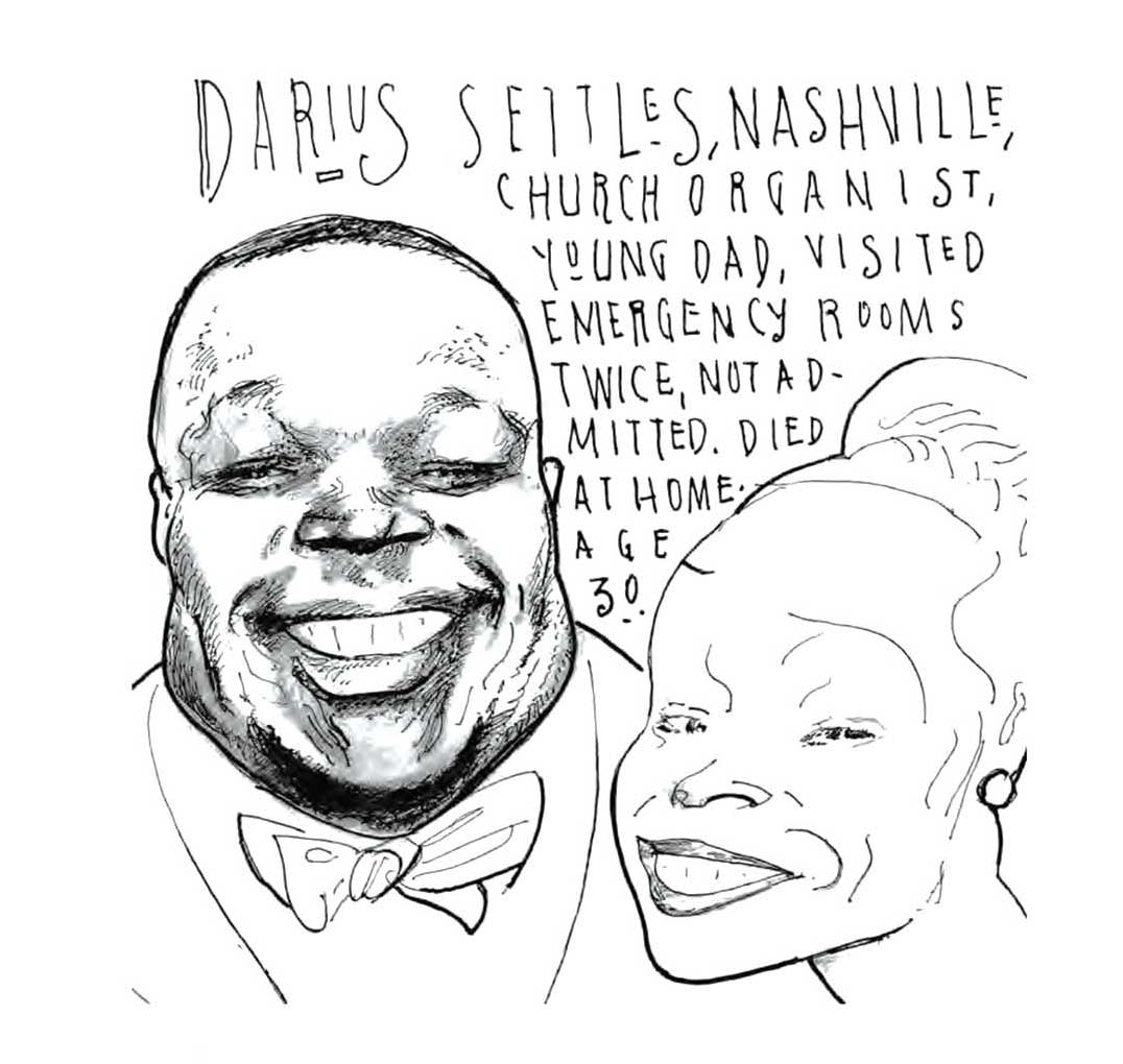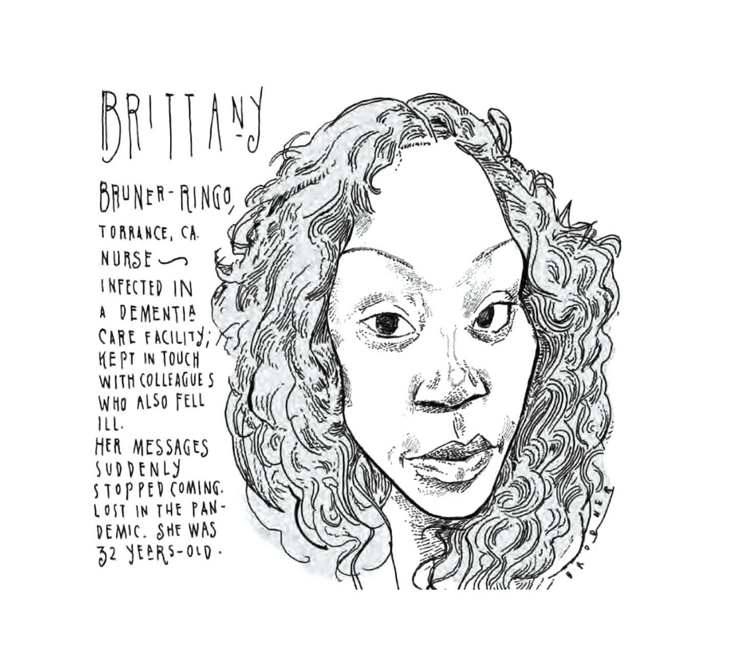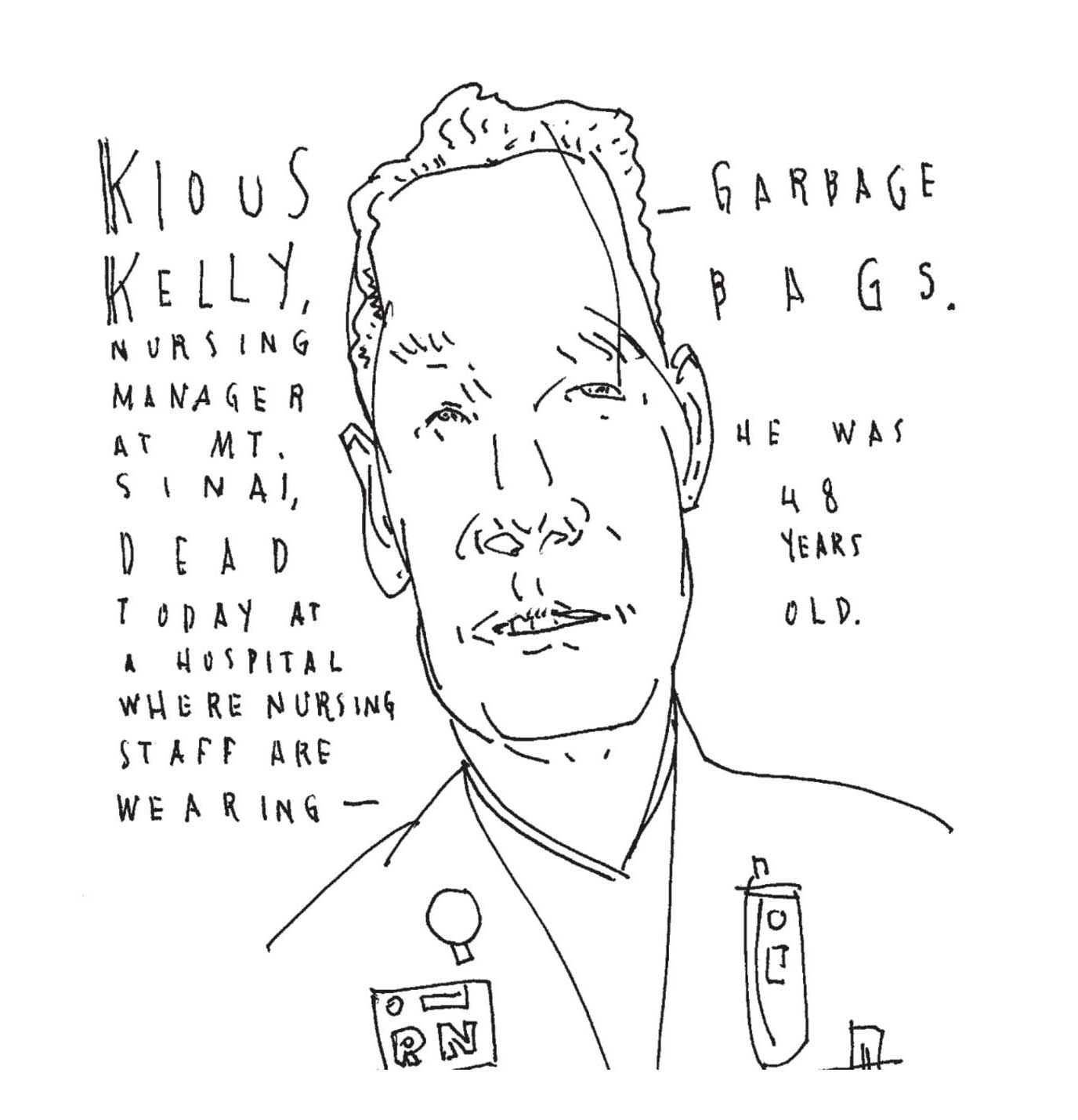 I began with a simple portrait of a young New York male nurse. Soon I was drawing every day: finding people who were suffering in this terrible mass death, whose faces and names our consciousness might retain for an extra moment, making more vivid the lives that had been cut tragically short. This became a personal memorial for me, like lighting candles around a photo on a street corner. As the consequences of the pandemic became exacerbated by Trump administration malfeasance and mendacity, calling those political actors out became a clear part of the story as well.