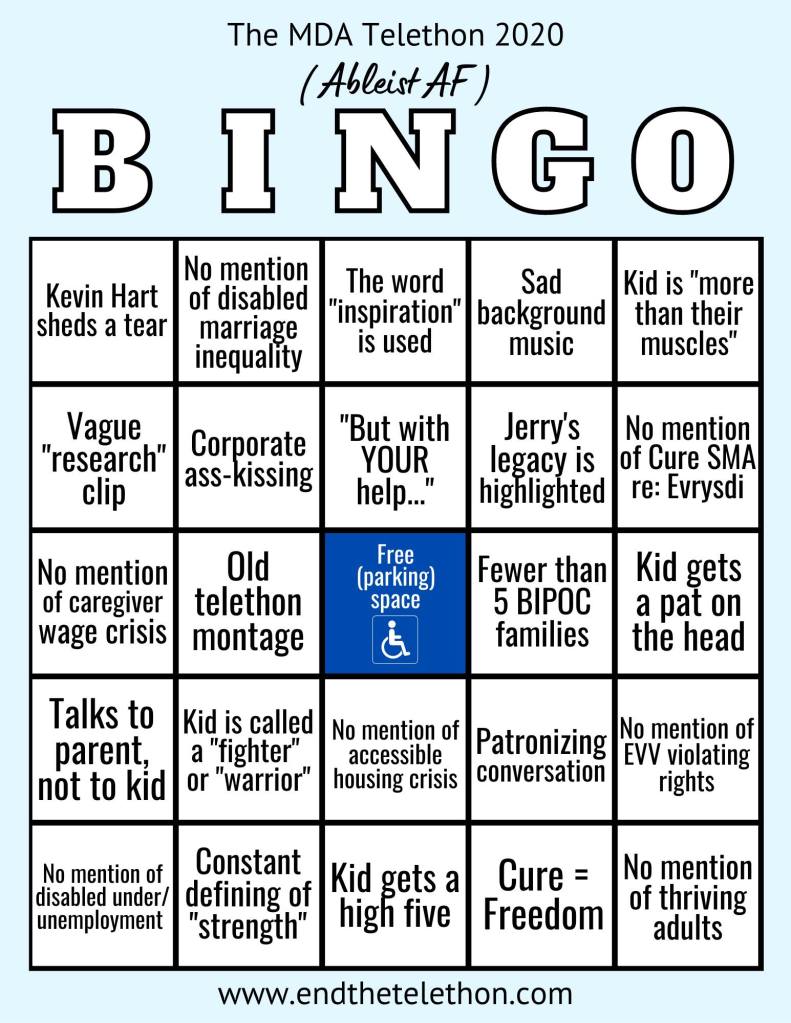That same day, activists with muscular dystrophy, many of them former MDA poster children, will protest the telethon with their own counterprogramming, including a Twitch stream to raise money for Neuromuscular Disabilities United, a disabled-led nonprofit. One protest group released an MDA telethon bingo card, highlighting the ableist cliches of disability charity events. At first glance, this may seem baffling: Why would anyone protest a disability charity and its fundraising efforts?