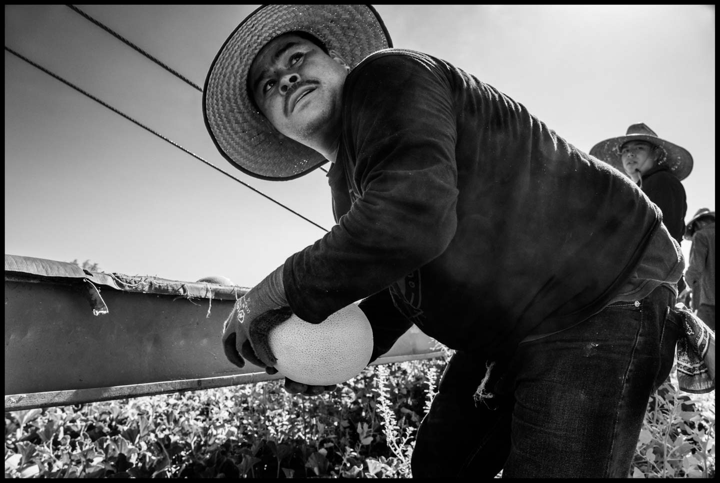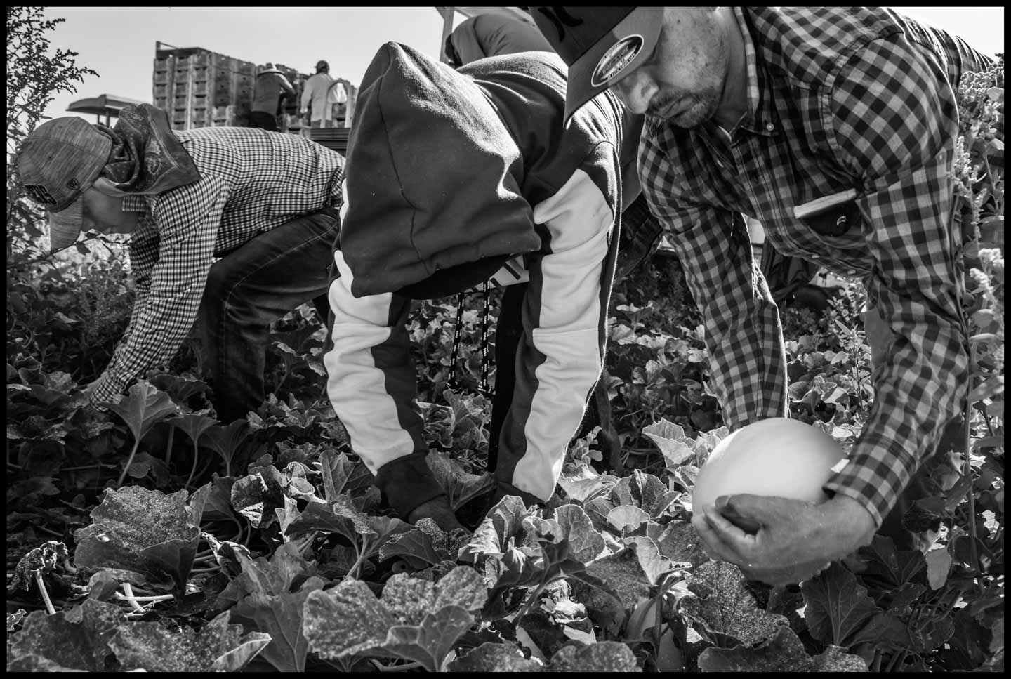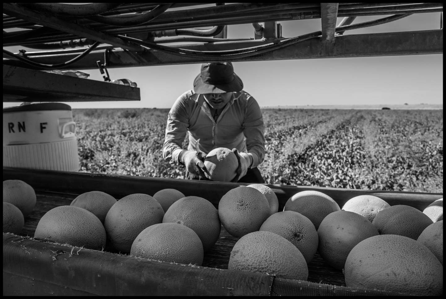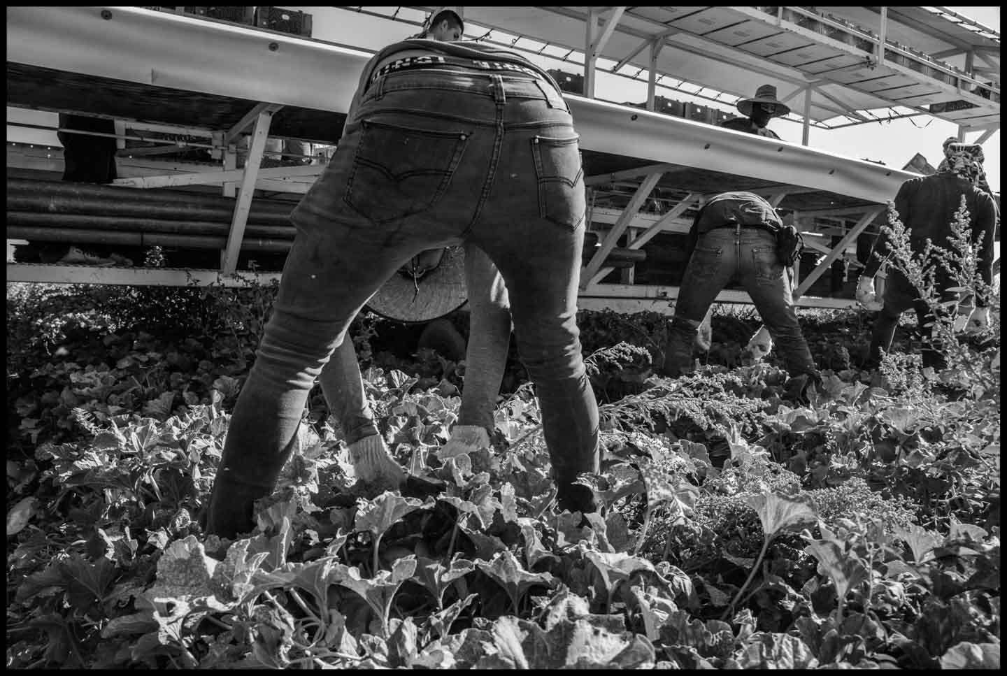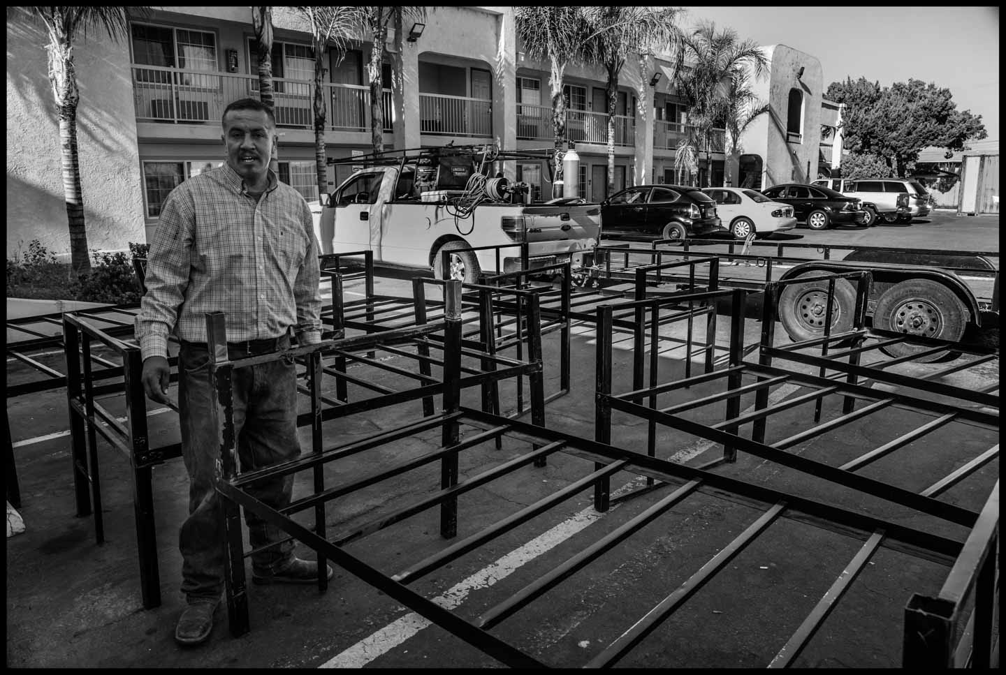 The photographs in this series are an effort to show visually the reality Roberto described. Some show the work process of two other crews of H-2A workers, hired by a different contractor. Others show the Palm Tree Inn and other motels where they live. Since the number of workers brought to California by growers increases by thousands every year, we need a better understanding of their true situation. Roberto’s story and the photographs are a part of that picture.