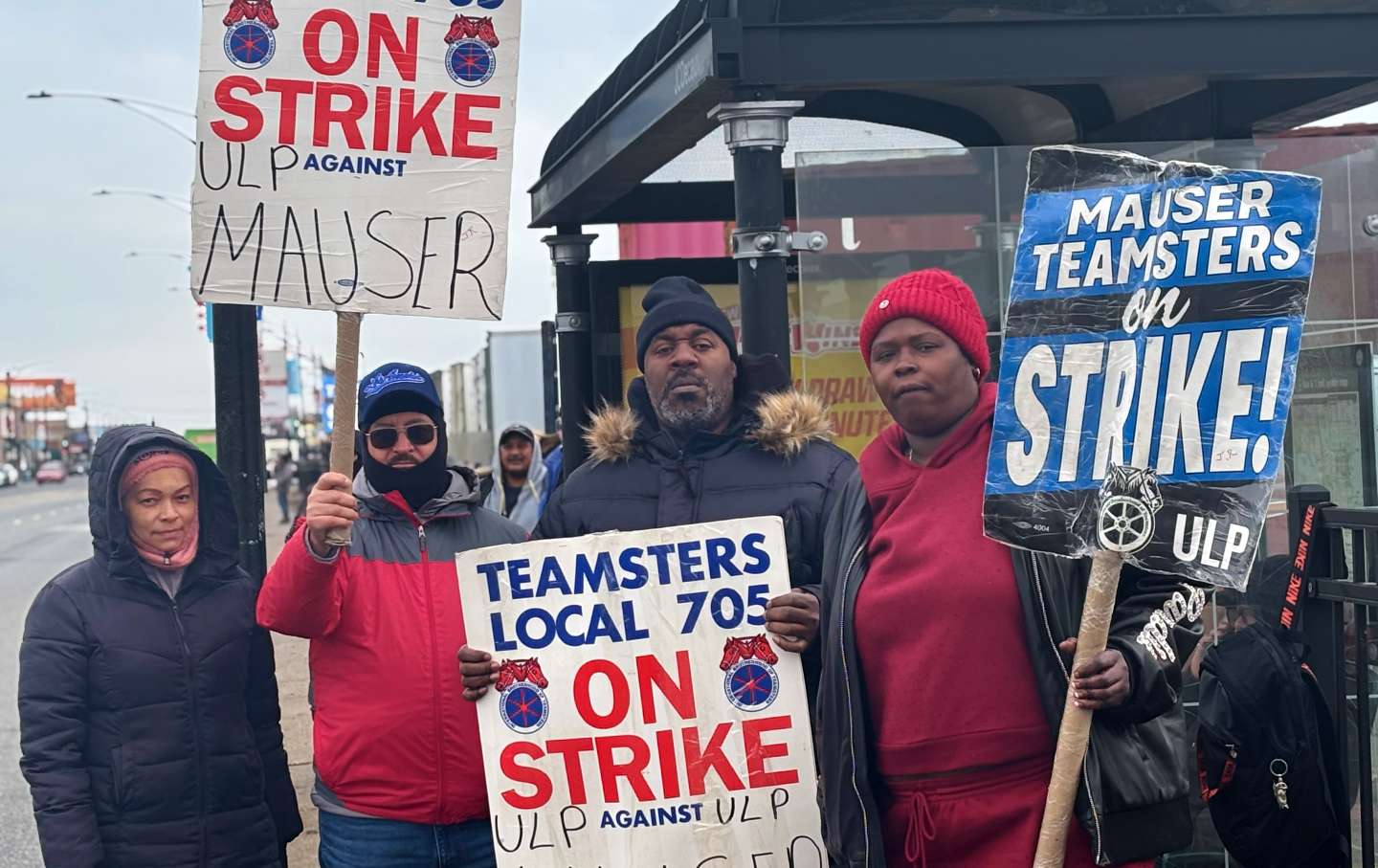 Juanita Robinson, far right, and other members of Teamsters Local 705 go on strike against Mauser Packaging Solutions. (Sarah Lazare)