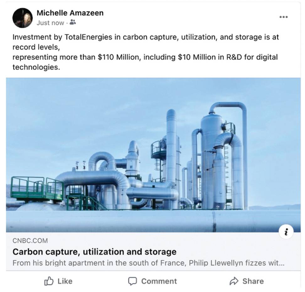 That prompted more experiments, culminating in a book in which Amazeen takes the media to task for allowing this fox into the hen house. In one study, she looked at how native ads get a second life on social media, where outlets are required to share and amplify them, and where “frequently the disclosures that are required by the Federal Trade Commission that distinguish them as commercial content, disappear.” When Amazeen shared a TotalEnergies advertorial from CNBC on Facebook, for example, no “sponsored content” label appeared on the post. So those who clicked on it to read the article might spot the disclosure on the website, but if they skimmed the headline while scrolling their feed, they would assume this was a reported story.