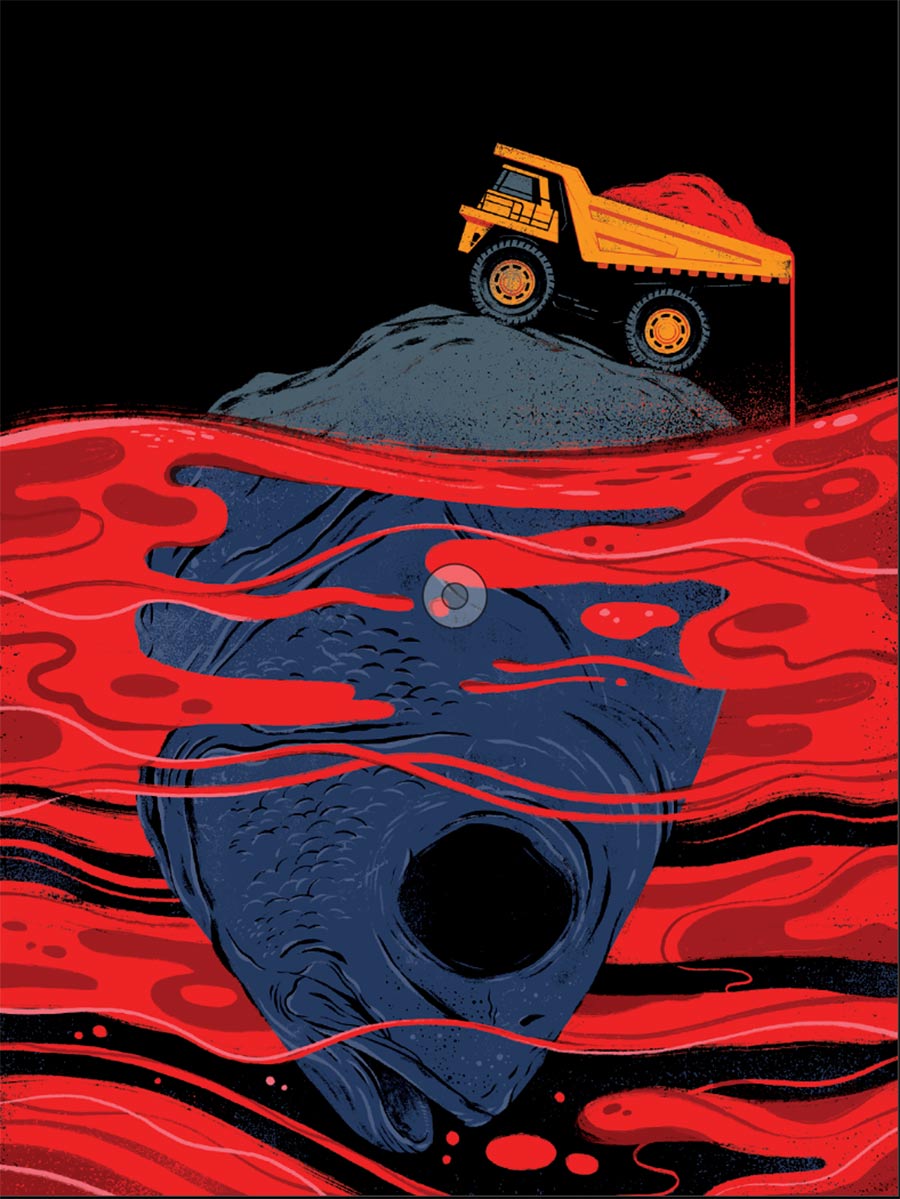 When I visited Kawasi, the village nearest to the mine, early one morning this past December, I saw just how the landscape had been wrenched from wilderness to dystopia by Harita’s nickel operations. Tall smokestacks belched gray and red smoke, and a river gushed reddish water into the blue sea. The heavy rain forced us ashore, prompting an admonition from my translator not to reveal that we were journalists, because, he said, security forces were in league with the mining company. Kahfi, the Laiwui chief, would later tell me that he was arrested and jailed for two months for protesting at the mine. Local journalists, he said, had also been detained after they approached the mine. A pair of Indonesian warships hung menacingly on the horizon.