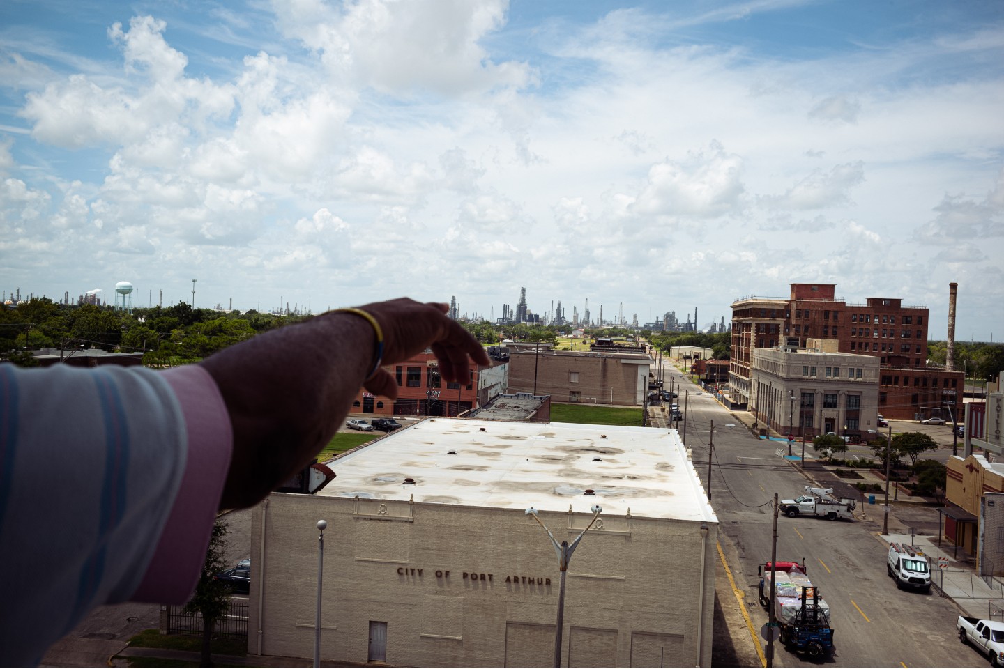 The viewing deck at Port Arthur’s City Hall offers visitors to the industrial city a view of the small downtown and the glimmering waterway. The channel is lined with massive tankers and refineries. John Beard, a former city council member, can name each and every facility that’s visible on the horizon. Just like a city booster in another town might point out skyscrapers and their architectural features, Beard can tell you what each facility produces and what pollutants are carried in the plumes of gray-brown smoke from their flares.