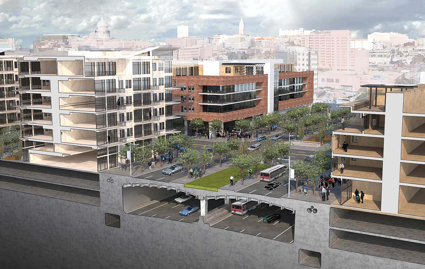 In 2004, Milwaukee Mayor John Norquist, who had successfully campaigned to remove a mile-long spur of the elevated Park East Freeway in his hometown, stepped down to lead a nonprofit called the Congress for the New Urbanism, where he began a campaign for the removal of urban freeways across the country. By 2020, CNU had active campaigns in nearly 30 cities, from Pasadena, Calif., to Syracuse, N.Y. Some campaigns call for full demolition, replacing freeways with boulevards, as in San Francisco. Others propose a vision like Reconnect Austin’s—depressing a freeway and covering it with a park at street level, as Dallas did with the Woodall Rodgers Freeway in 2012. But while more than a dozen freeways have since been removed, the idea has remained mostly aspirational, promulgated by urbanist nonprofits like CNU and the occasional mayor.