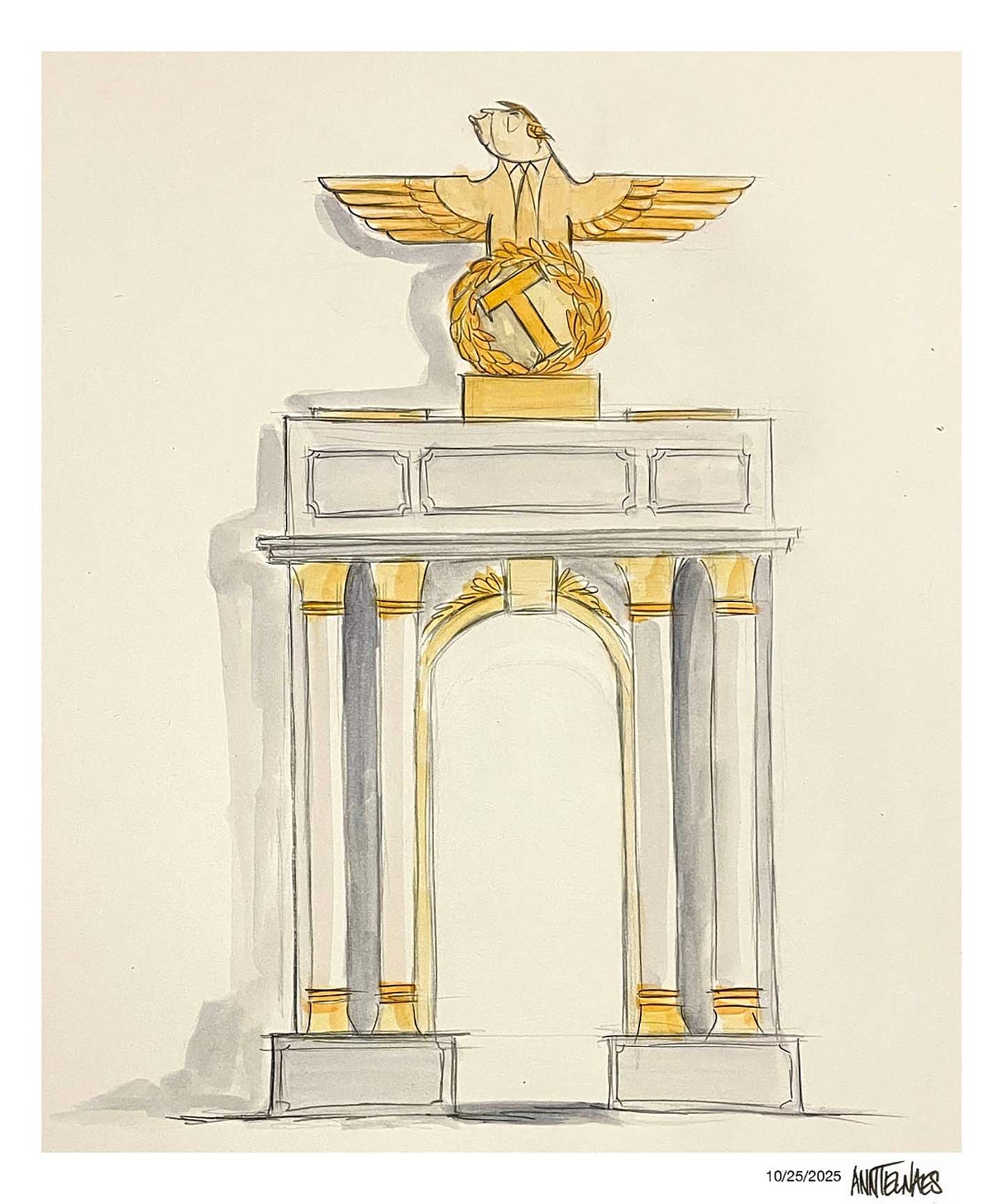 PoliticsOppArtNovember 3, 2025ArcArcDe Trump. Ann Telnaes Share Copy Link Facebook X (Twitter) Bluesky Pocket Email November 3, 2025 (Ann Telnaes). Check out all installments in the OppArt series.