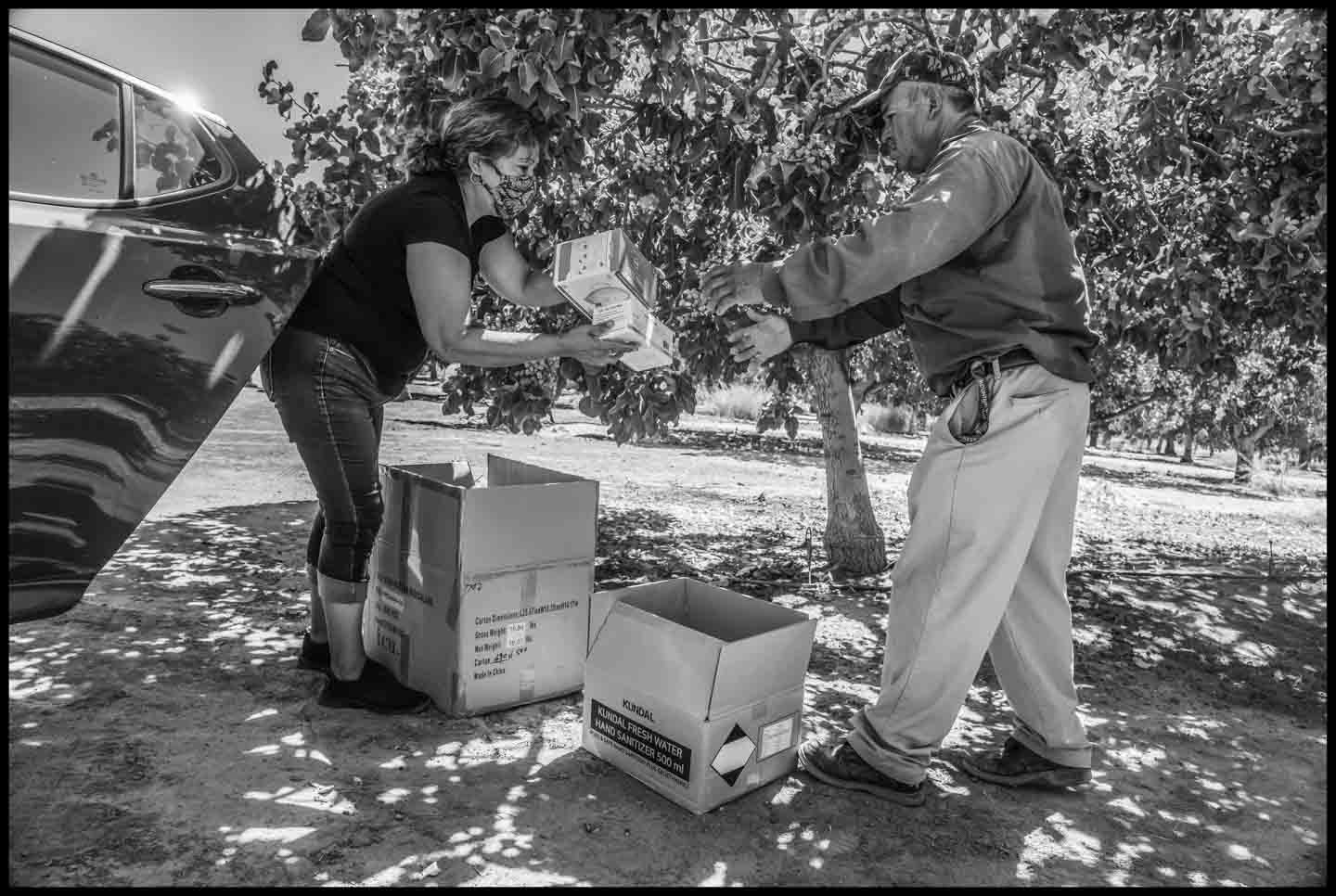 In the pandemic, poverty translates into illness and death. Madera County has had over 22,000 Covid-19 cases (14 percent of the population) and 266 deaths. Only half of its residents are vaccinated. Reporting Area C, which includes downtown and the eastside barrio, has the most cases, almost a third. By comparison, in Silicon Valley’s Santa Clara County, only 7 percent of residents got the virus, and over three quarters are vaccinated. Every day activists in FIOB go out to the fields to sign people up for shots. UFW organizers visit members in the almond orchards, bringing masks, sanitizer and other protective equipment.
