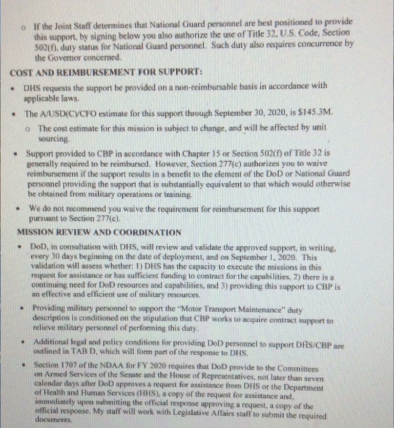 The memo, marked for official use only, was sent from Kenneth P. Rapuano, assistant secretary for homeland defense and global security, to Secretary of Defense Mark Esper. It was provided to The Nation by a Pentagon official on the condition of anonymity to avoid professional reprisal.