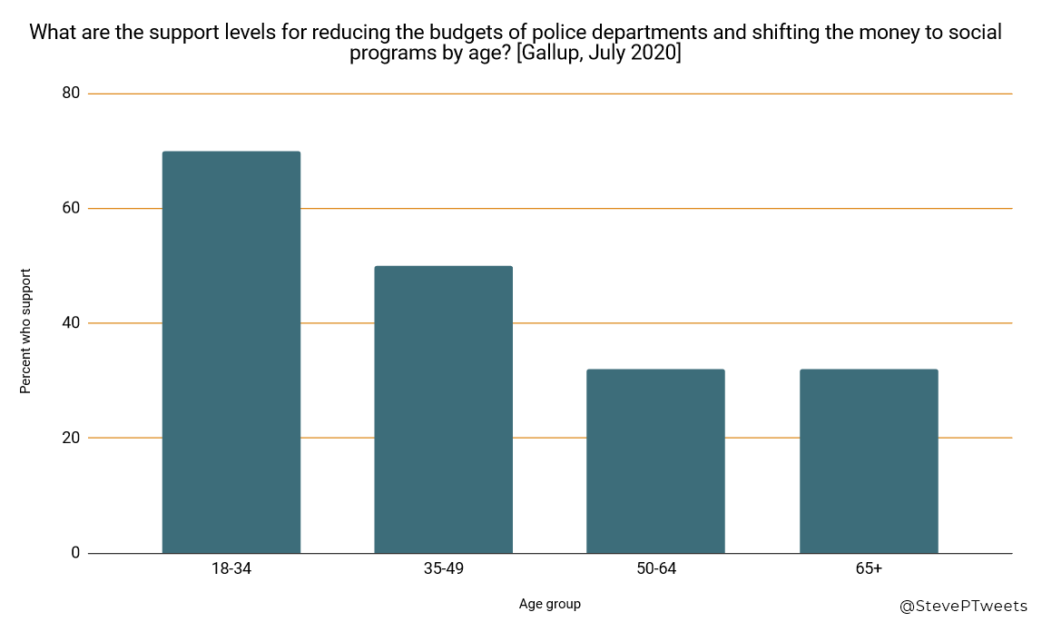 If the strategic electoral focus is on solidifying the support of that progressive and rapidly growing sector of the population, then the approach to issues of racial justice, in general, and Black Lives Matter and its demand to defund the police, in particular, should be the opposite of what is currently being counseled. While older Americans express greater ambivalence and anxiety about the concept of Black lives mattering, the under-30 crowd is far more enthusiastic and supportive. A Gallup poll last summer found that 70 percent of 18–34-year-olds supported “reducing the budgets of police departments and shifting the money to social programs,” more than twice the 32 percent level of support of those over 50.