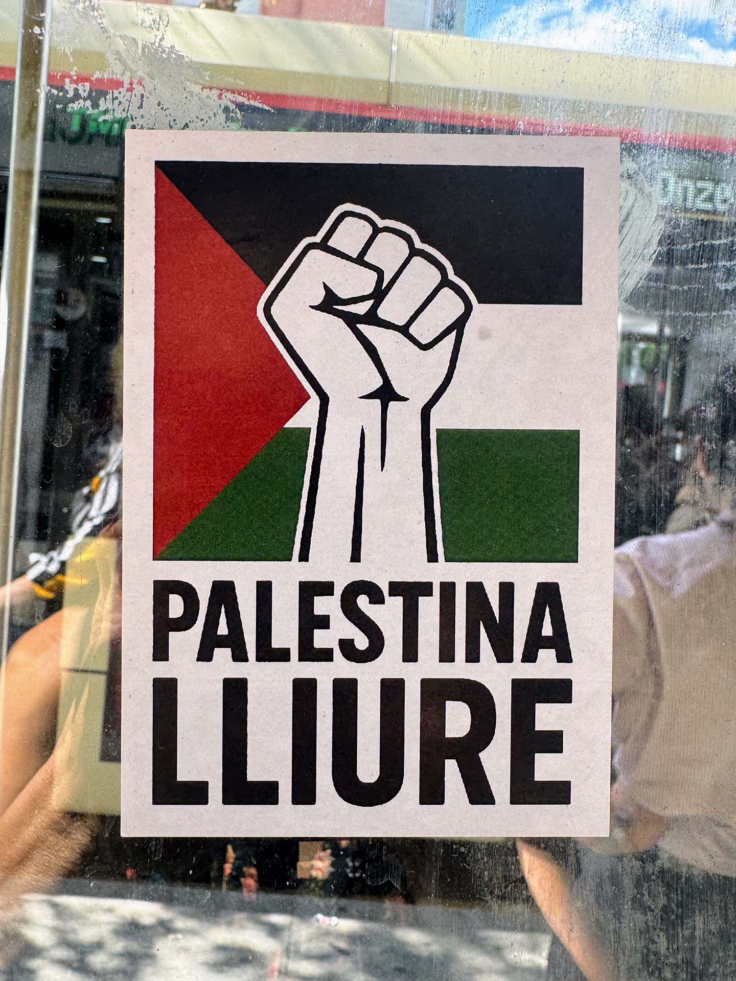 ActivismOppArtSeptember 26, 2025Free PalestineFree PalestineBarcelona’s streets are filled with “Palestina Lliure” posters, Catalonia, Spain, July 2025. Andrea Arroyo Share Copy Link Facebook X (Twitter) Bluesky Pocket Email September 26, 2025 (Andrea Arroyo). Check out all installments in the OppArt series.