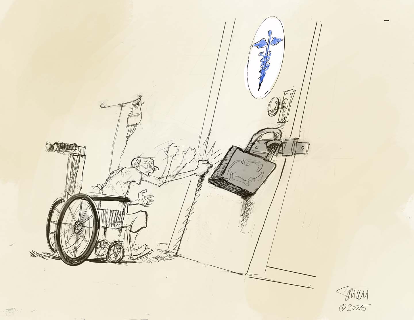 EconomyOppArtJuly 7, 2025GOP Cuts Health InsuranceGOP Cuts Health InsuranceRepublicans Make Healthcare Access Impossible David Small Share Copy Link Facebook X (Twitter) Bluesky Pocket Email July 7, 2025 (David Small). Check out all installments in the OppArt series.