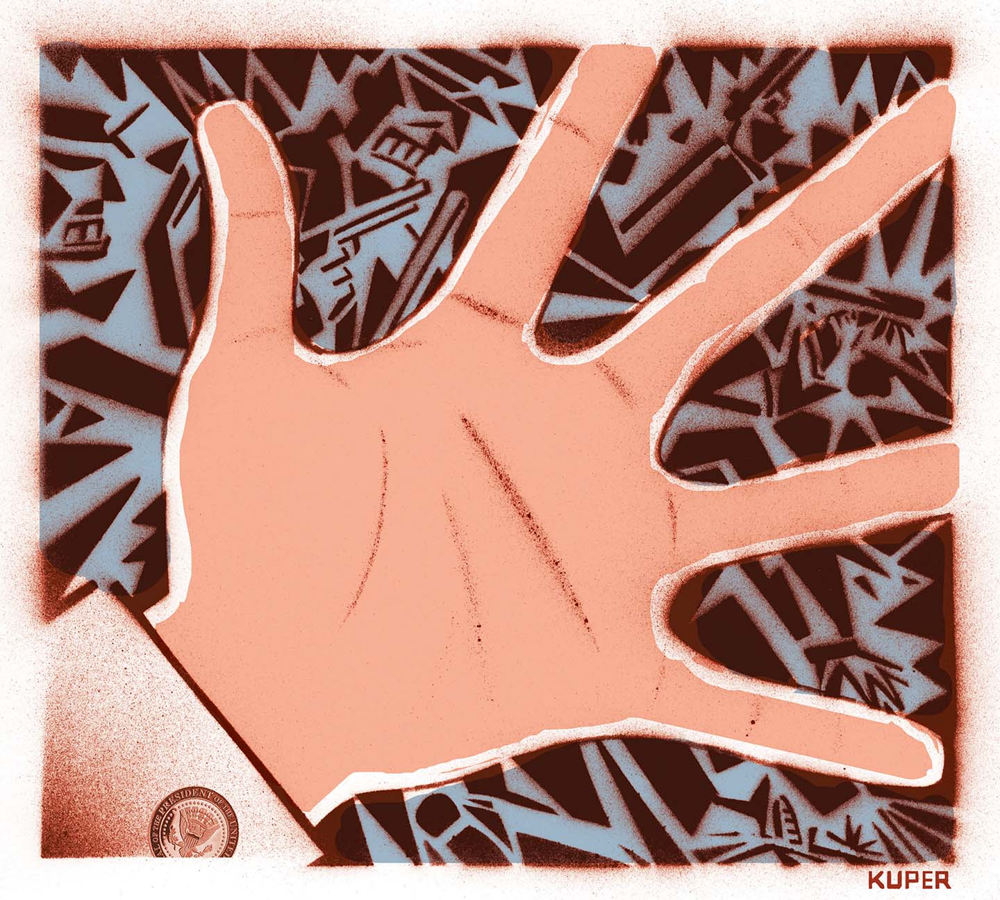 PoliticsOppArtApril 9, 2025ICE’s Illegal Detentions and DeportationsICE’s Illegal Detentions and DeportationsTrump’s attack on legal protests. Peter Kuper Share Copy Link Facebook X (Twitter) Bluesky Pocket Email April 9, 2025 (Peter Kuper). Check out all installments in the OppArt series.
